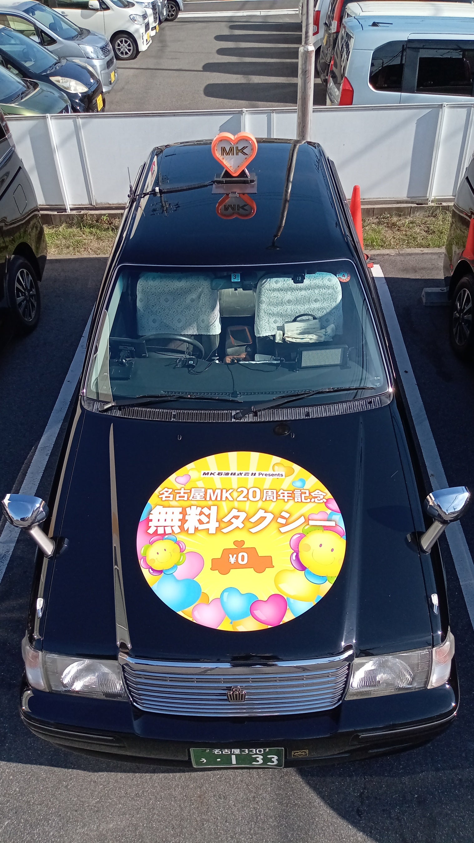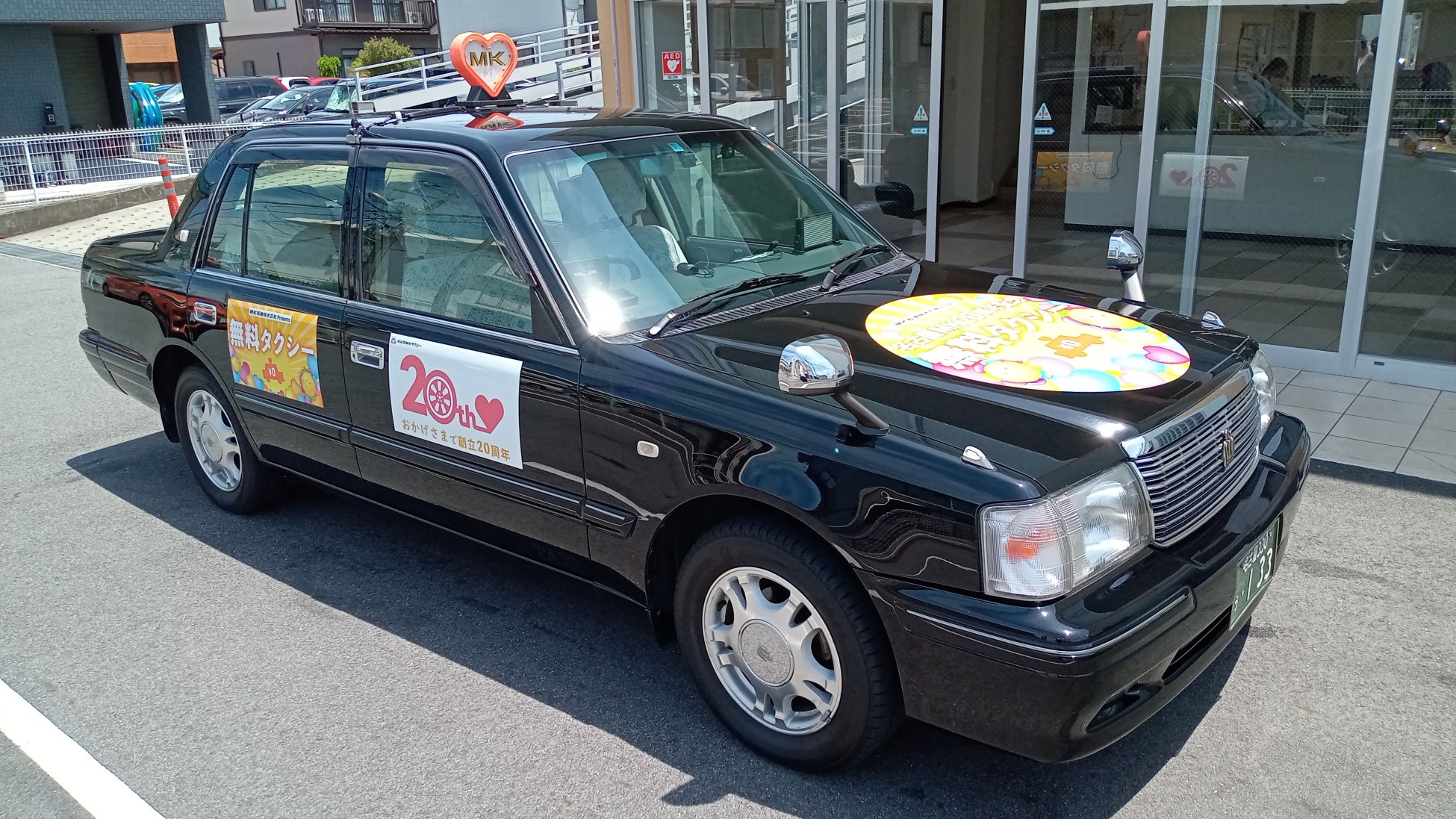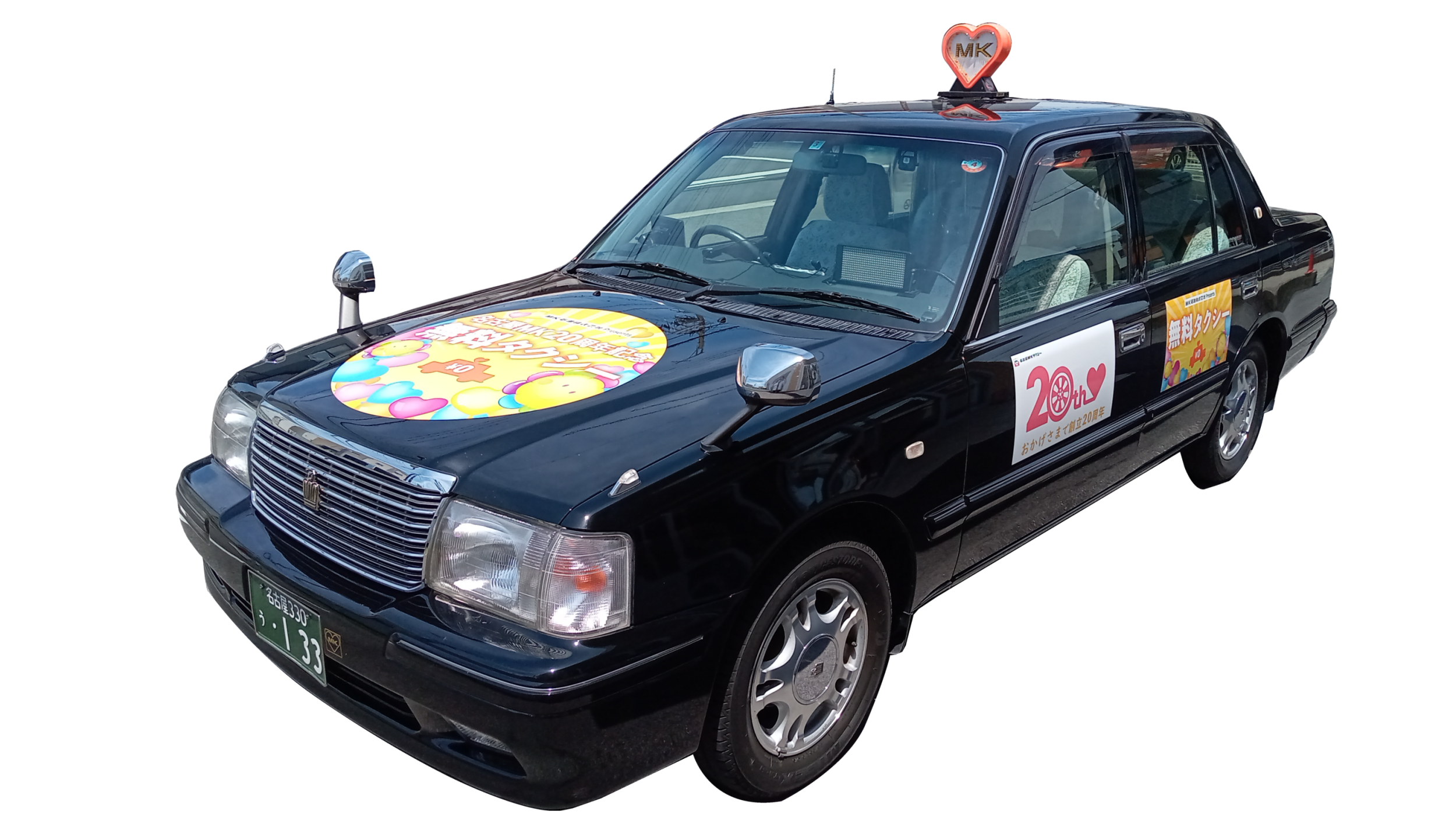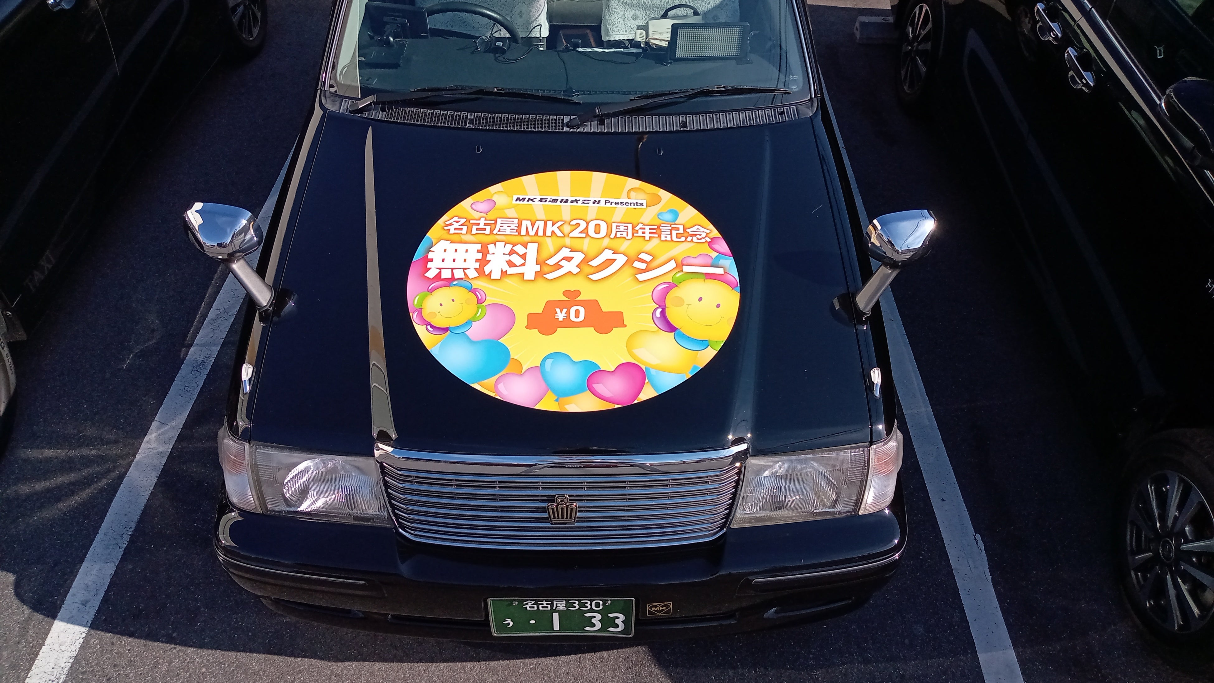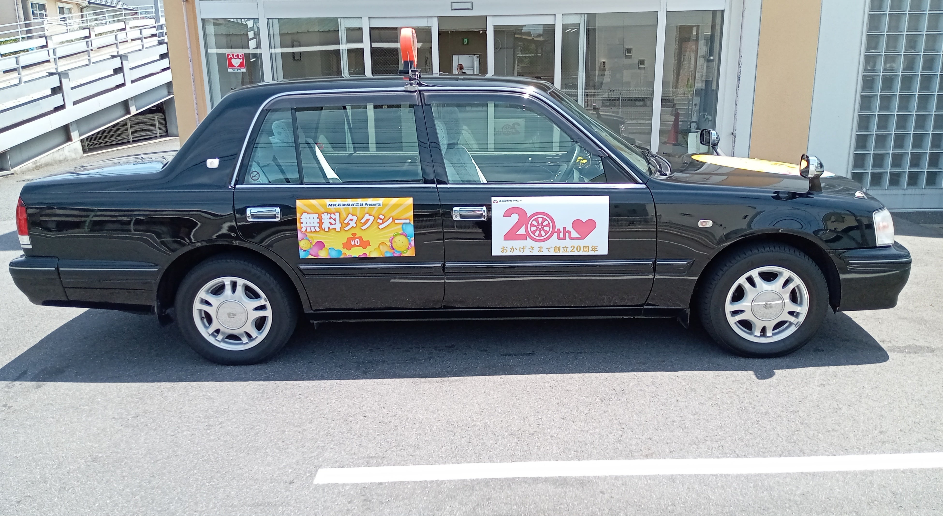 20周年記念のロゴと無料タクシーのマグネットが目印です。