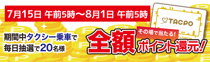 ※タクシーご乗車中、TACPOカードを読み取ったタイミングで抽選を行います。