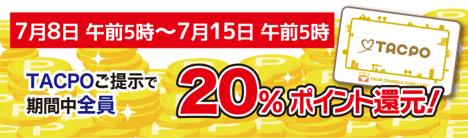 ※TACPOカードのご提示がない場合(お忘れの場合など)は対象外となります。