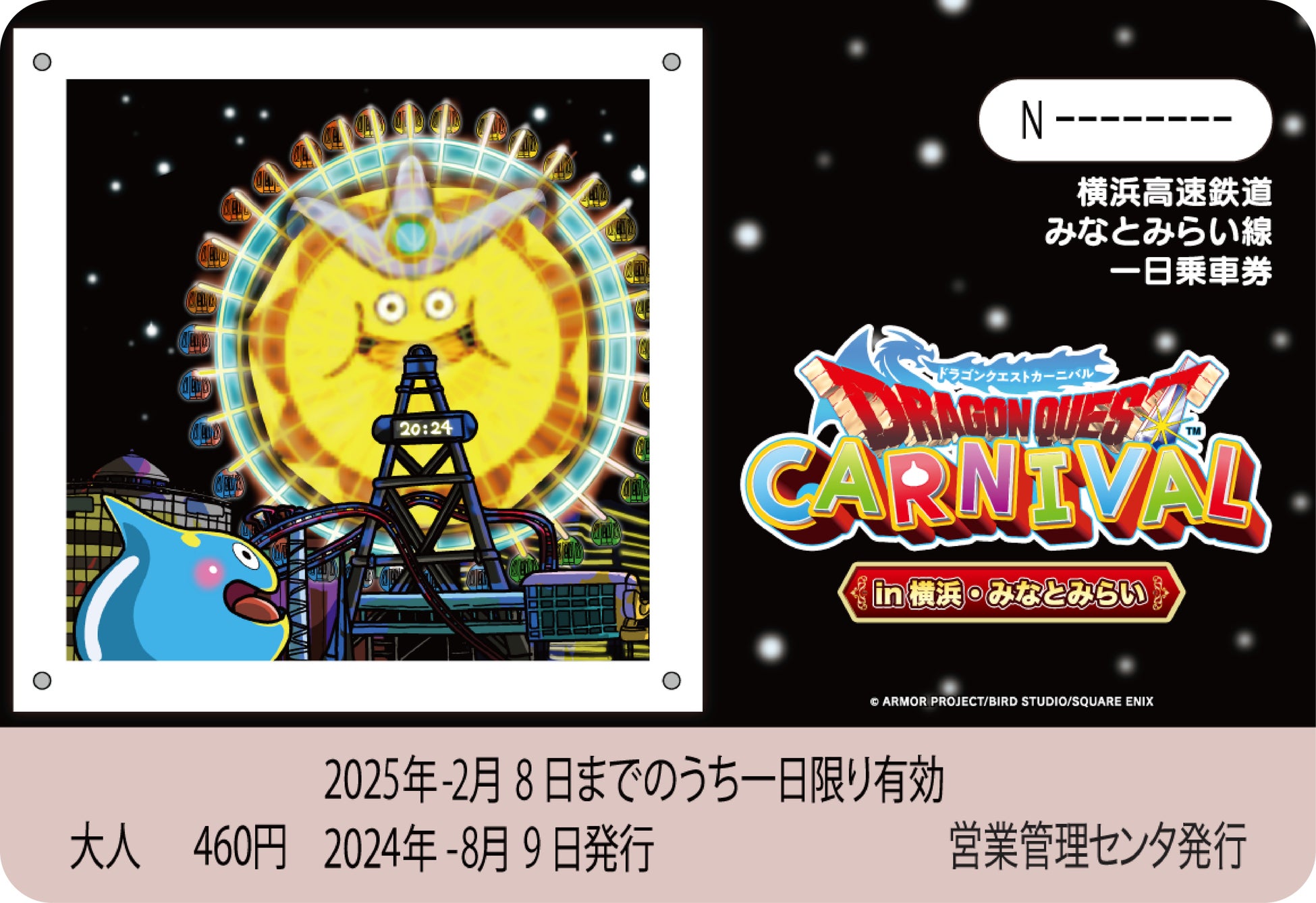 「ドラゴンクエスト」シリーズのスペシャルイベント『ドラゴンクエストカーニバル in 横浜・みなとみらい』オリジナルデザインみなとみらい線一日乗車券を台紙付きで発売!