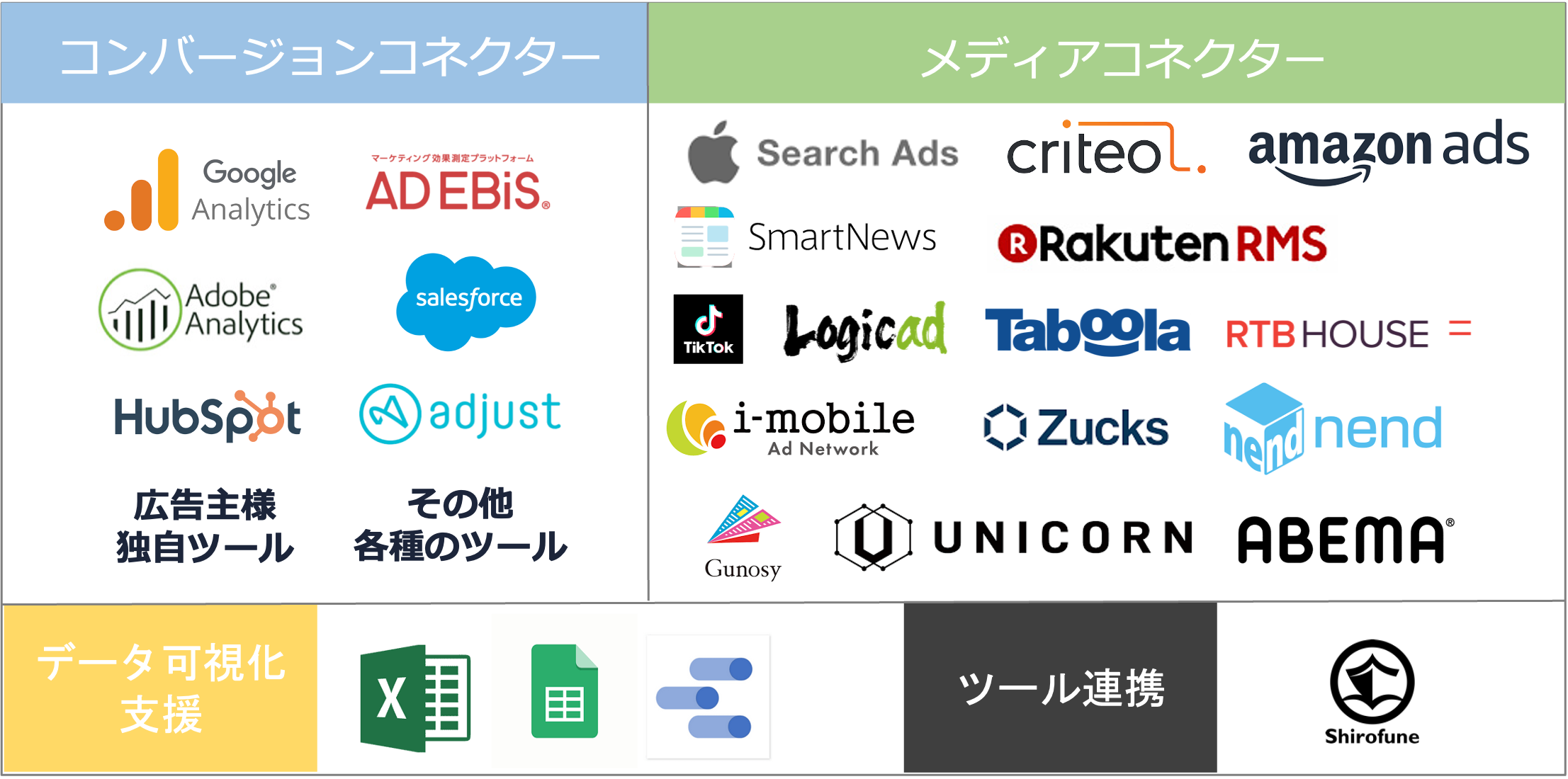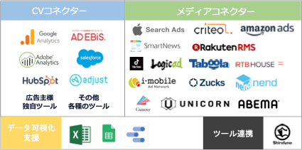 またShirofune社が提供する広告運用自動化ツール「Shirofune」と連携し、全ての広告媒体のレポートデータをShirofune上で統合管理・分析・ダッシュボード化できる機能「RaQuboメディアコネクター for Shirofune」の提供を開始します。