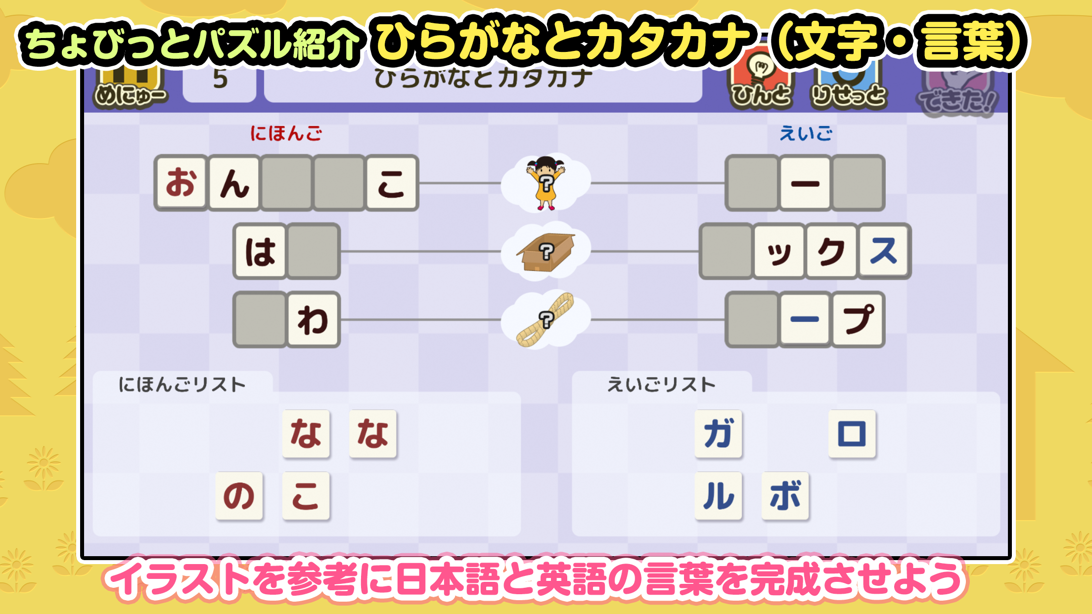 内容:計算、数量感覚、論理、図形、言語・語学のパズルを収録した知育学習アプリ