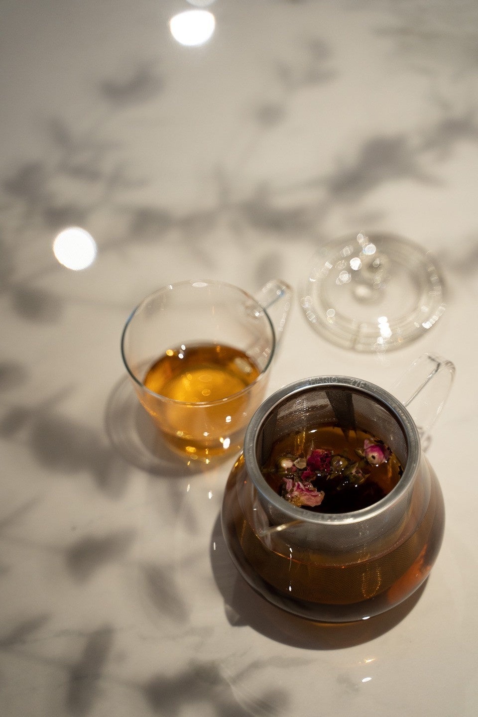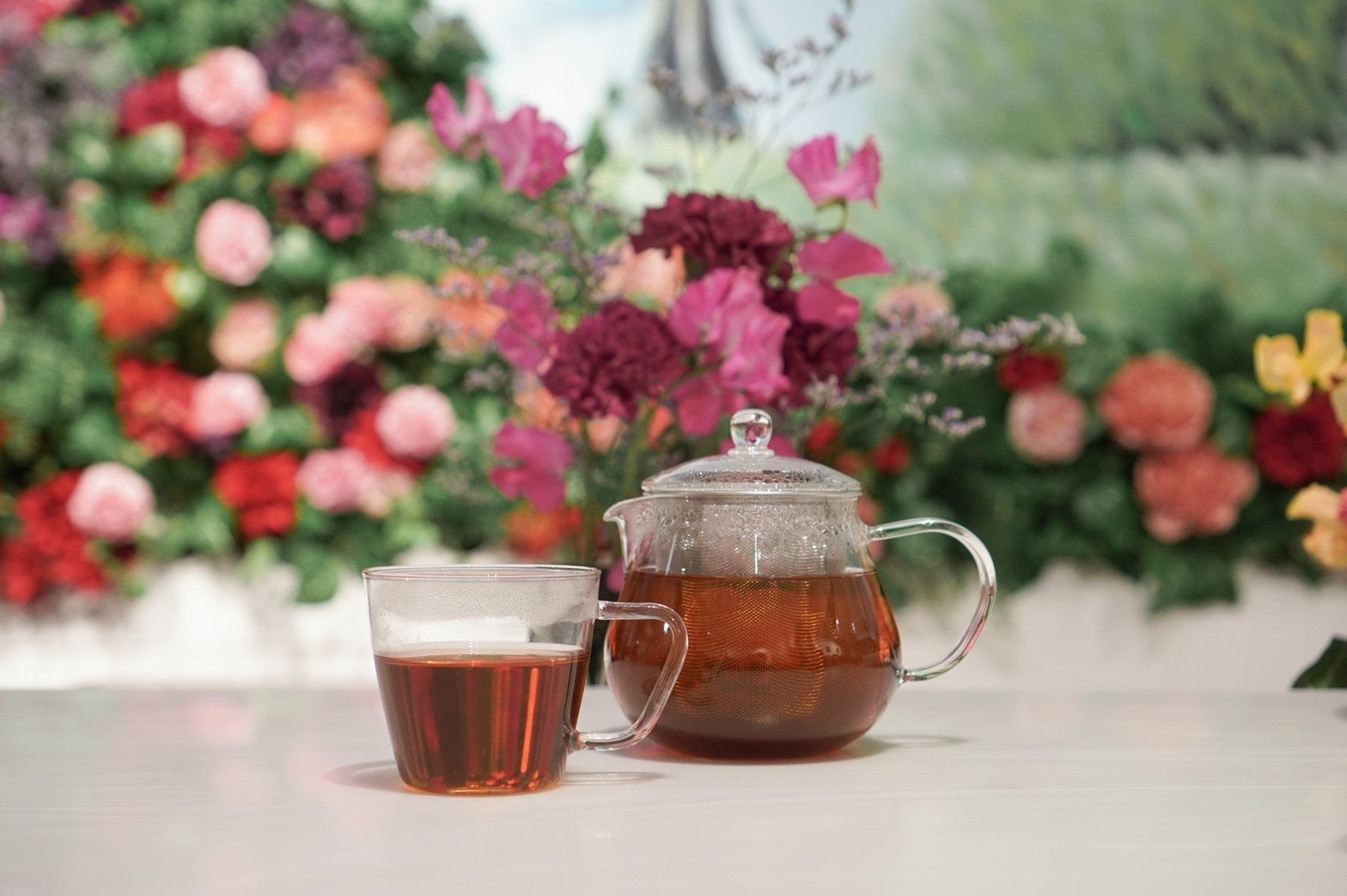 ドライフラワーが入った見た目も華やかなホットティーです。
