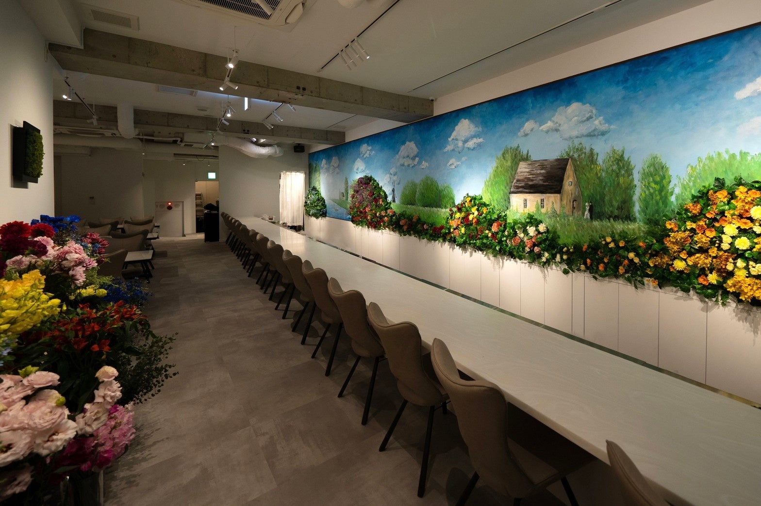 チャージがお花!映えスポットでいっぱいの店内写真を公開。印象派モネをイメージした15m×2m巨大ウォールアートと約2,000本の生花アートダイニング&バー「MONE」3月4日新宿3丁目にオープン