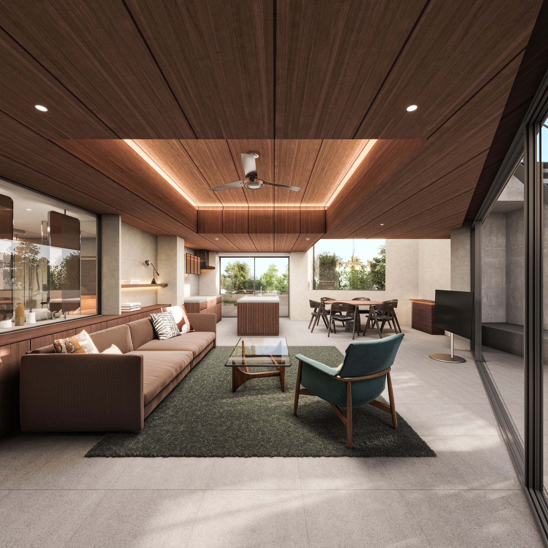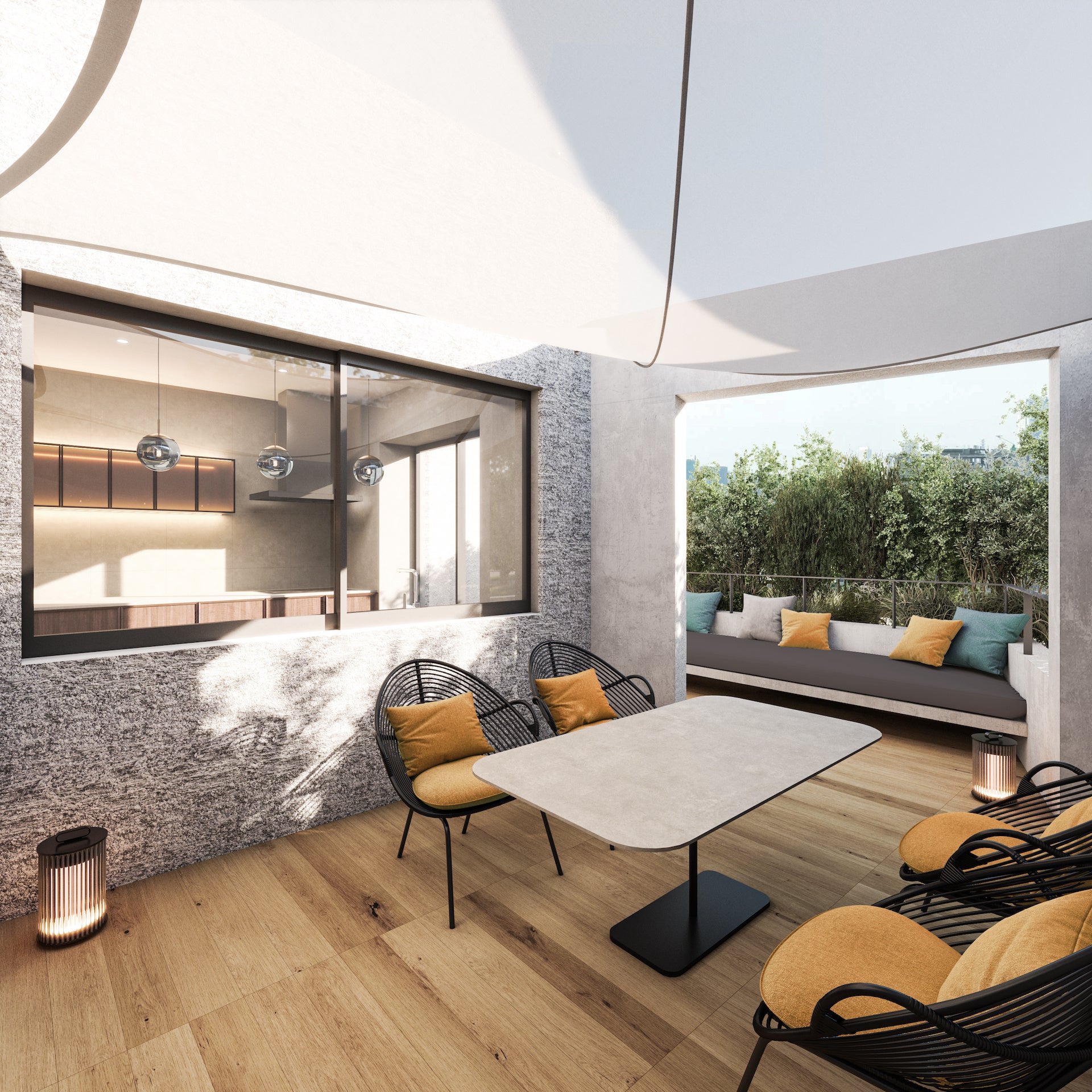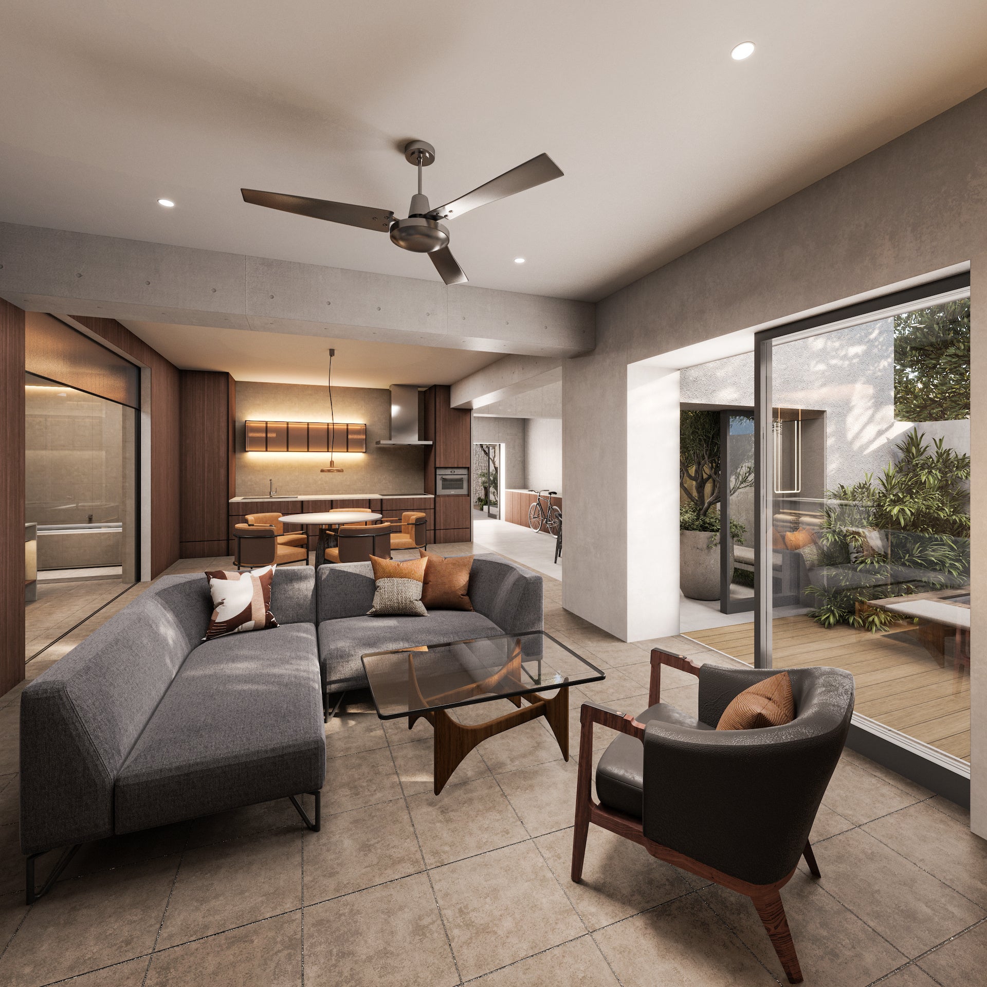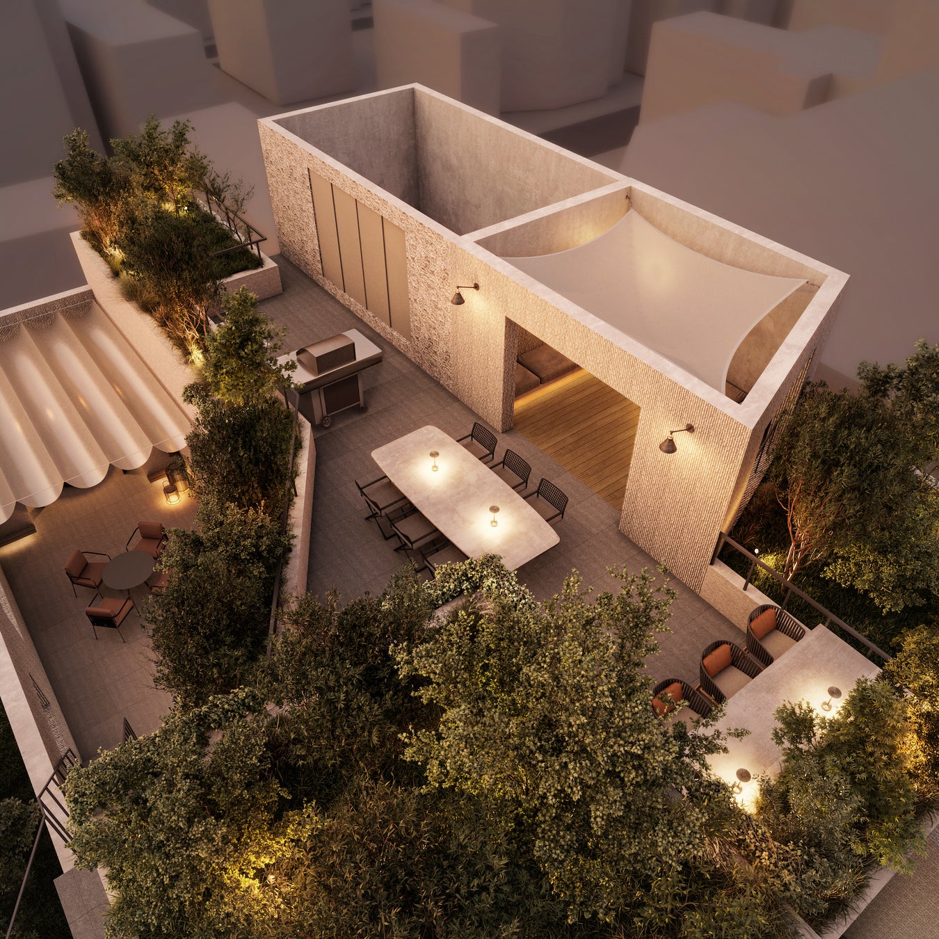 NOT A HOTEL FUKUOKAを代表するPENTHOUSE。テラスを含めて250㎡を超え、すべての空間を回遊させるように繋ぐことで、ひとつの住まいの中で様々な楽しみ方を実現する、福岡でも唯一無二の居場所。