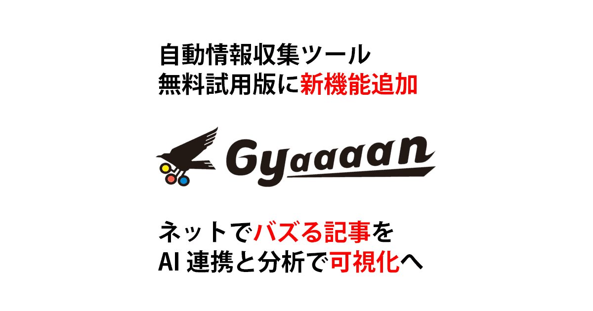 「検索サイトの利用は損失になる」時代のネット情報収集ツール「Gyaaaan」口コミで利用者2000人超獲得、新しい分析手法のマーケティング活用や情報発信を加速する新規機能追加