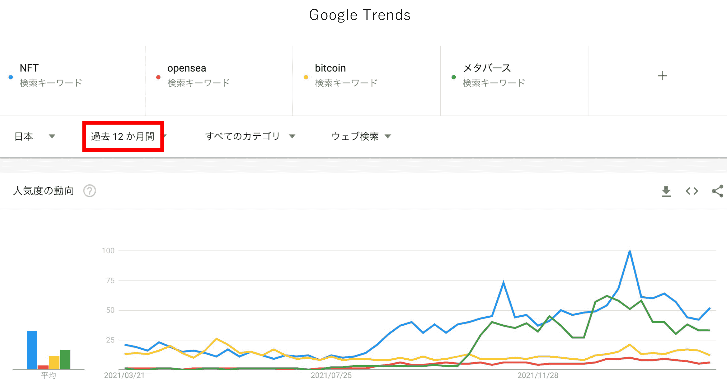 - メタバースというキーワードのようにエンタメだけ伸びている場合は話題先行で技術が追い付いていない、技術だけ伸びているBitCoinは経済や一般生活に浸透していない