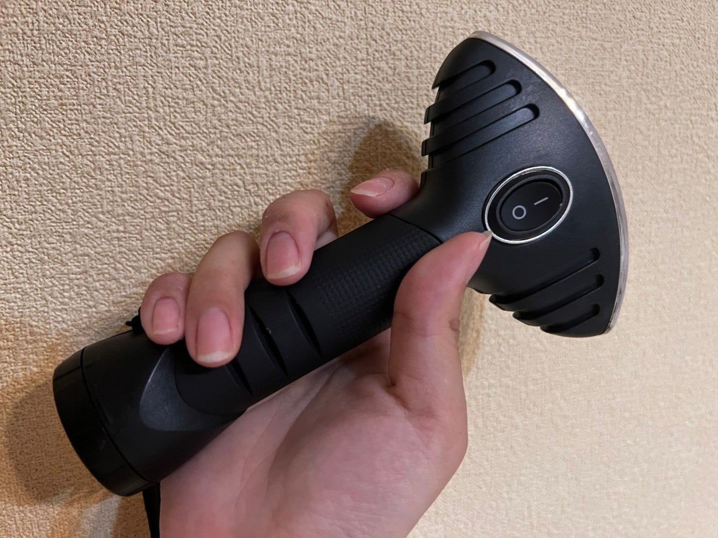 ワイドビームPROは手でしっかり持てるようにハンドルは太めです。ハンドルに対し尻キャップが大きいので、手で持ち歩いている時に遠心力で手からスポッと抜け落ちるのも防ぎます。