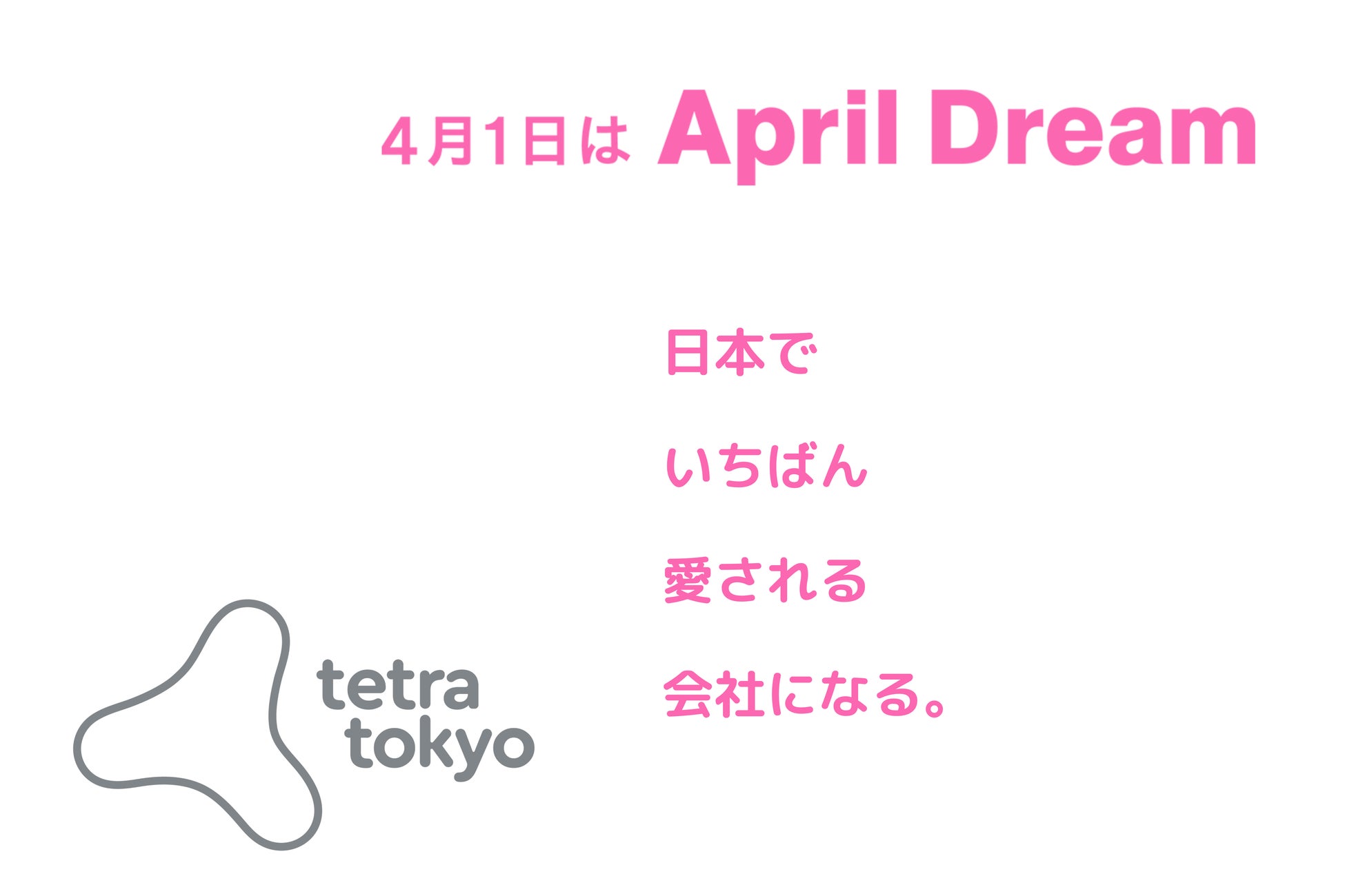 Tetra Tokyo株式会社(本社:東京都渋谷区、代表取締役:市川 俊之)は、4月1日を夢を発信する日にしようとするApril Dreamに賛同しています。このプレスリリースは「Tetra Tokyo」の夢です。
