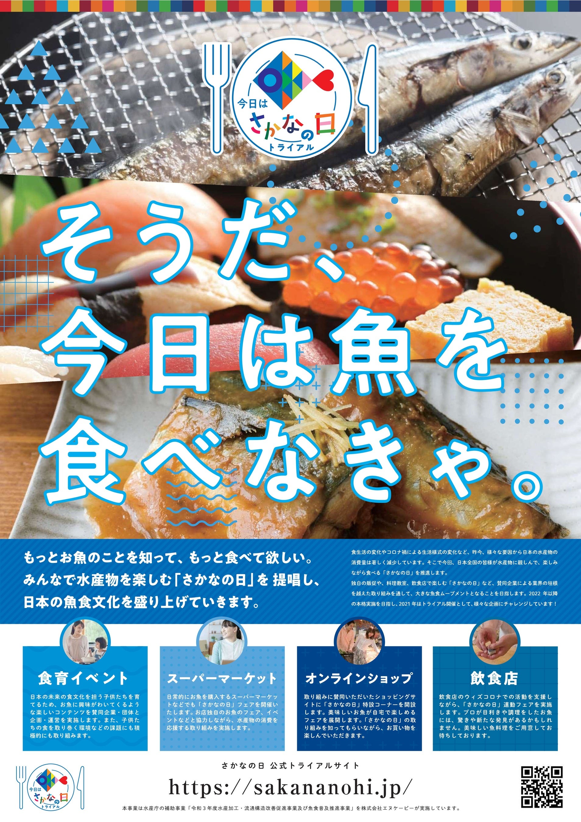 また、「さかなの日」トライアルに賛同した飲食店では、水産物消費への意識・意欲向上などを目的として『「さかなの日」トライアルポスター』の掲出など啓蒙活動を行います。