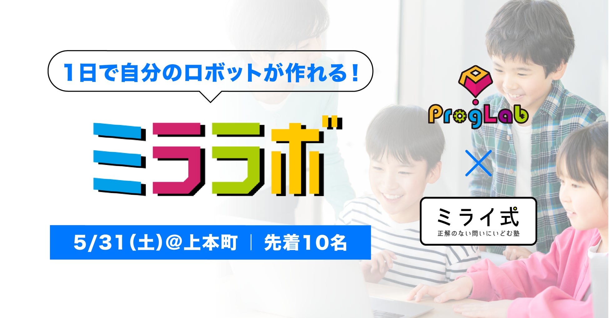 『ミララボ』5月31日(土)開催決定!勉強が好きになるきっかけづくりを目指す2時間の特別体験!~たった1日で、子どもが「自分で考えたロボット」を作り上げる~