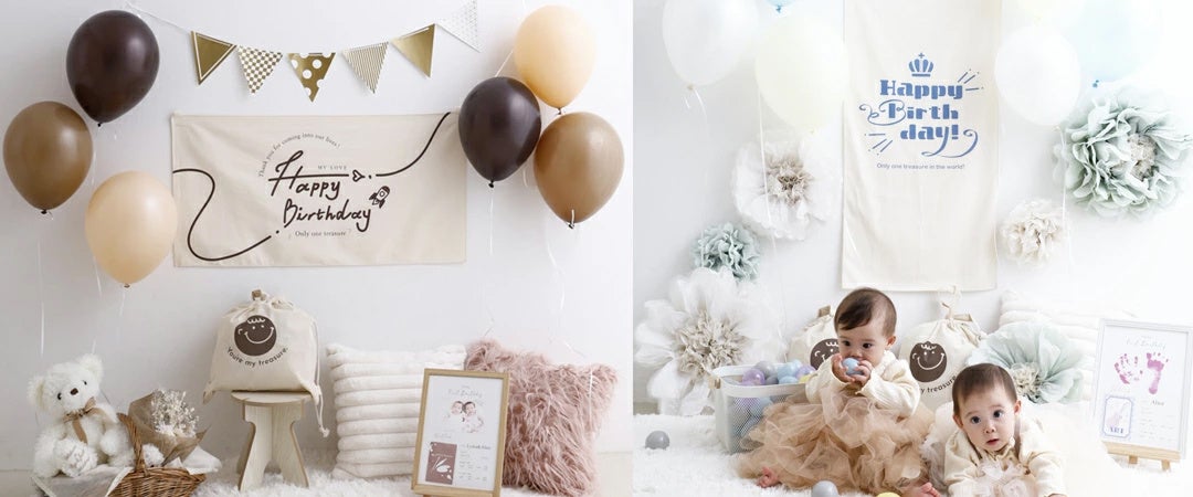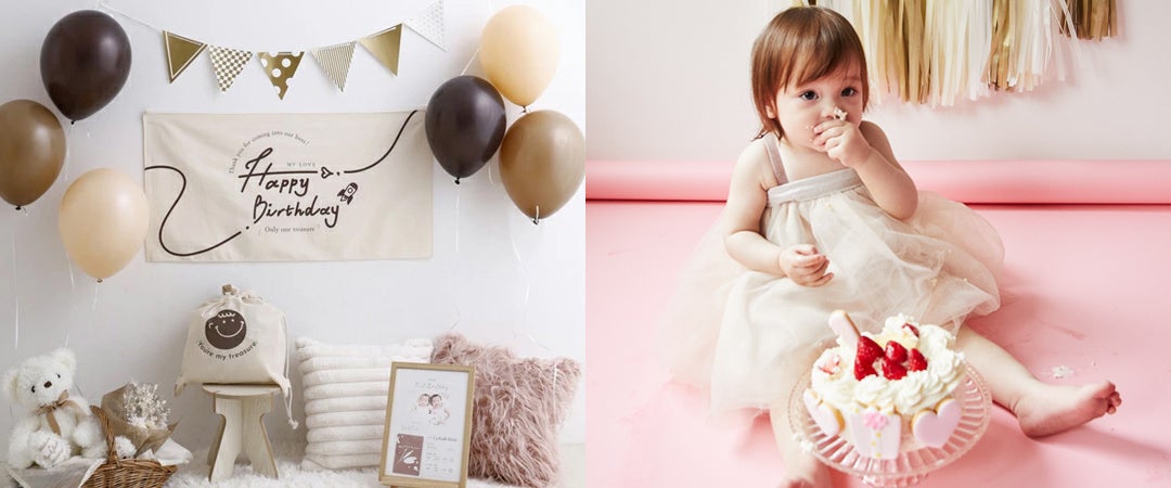 一生に一度のfirstbirthday。特別に飾って、赤ちゃんのキュンとする可愛さを思い出に残しましょう。