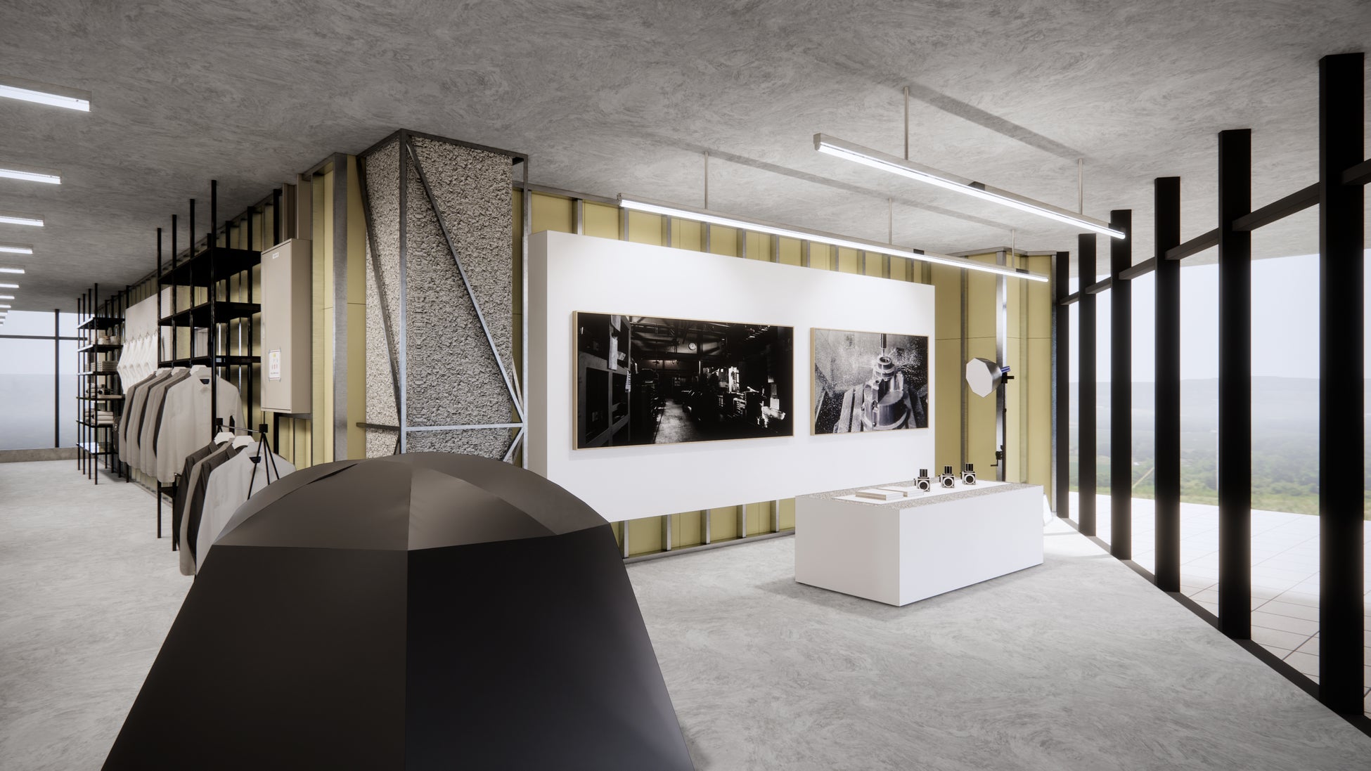 muracoは金属加工工場を母体としたブランドである。そこには歴史の中で培われた確かな技術が存在し、工場のクラフトマンシップがあってこそ洗練されたプロダクトデザインは生まれている。そのストーリーとプロダクトを伝える空間として「Factory × Gallery」をコンセプトに空間を考えた。空間には伝える場所としての「Gallery」エリアを設け、内装では本来裏側にある下地材を表に出すことで、表側と裏側を同等に扱い、什器においては工場で実際に使用している備品とmuracoのプロダクトを組み合わせた。ものを製造するための装飾されていない「Factory」と、美しいものを伝えるための洗練された「Gallery」との、一見相反する要素を一つの空間にまとめることを考えた。(谷尻誠 / 吉田愛 SUPPOSE DESIGN OFFICE)