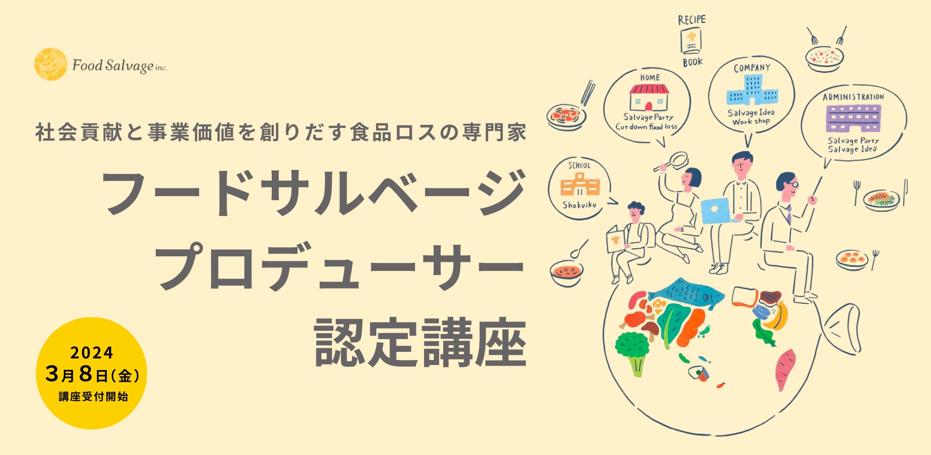 社会貢献と事業価値を創りだす食品ロス専門家「フードサルベージプロデューサー」の認定講座 3月8日にスタート