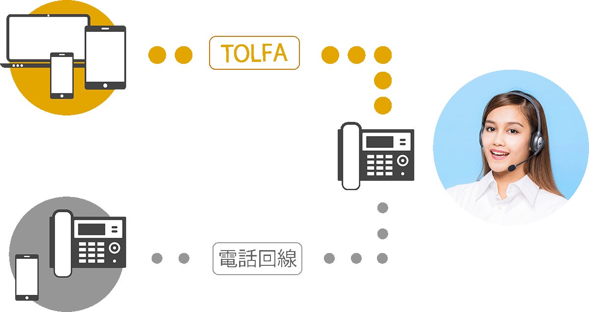 TOLFAからの無料通話はPSTNからの着信と同一電話設備へ収容できるため、業務フローを変更する必要がありません。電話オペレータの受電操作もいままで通りです。