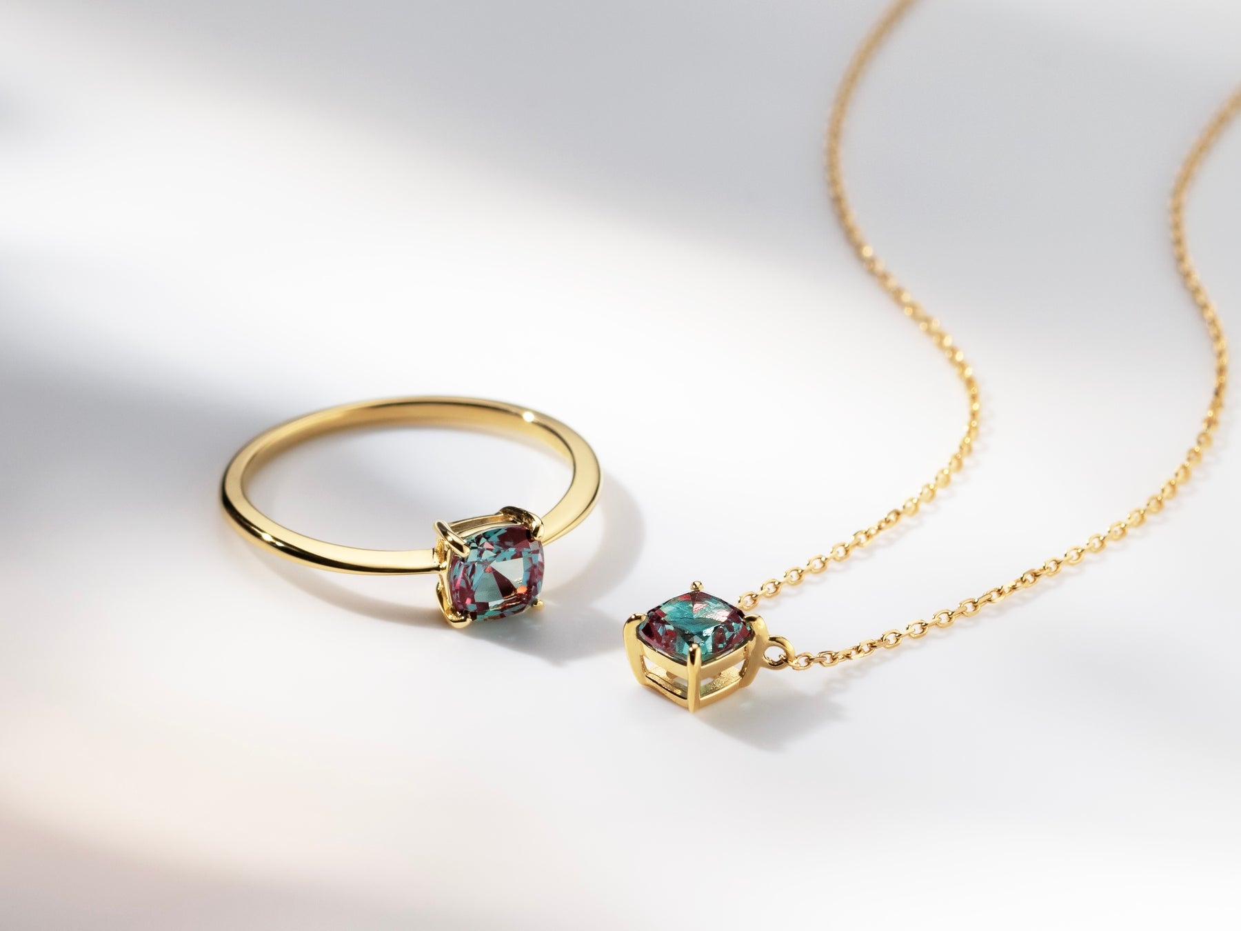 注目の「ラボグロウンの宝石(人工宝石)」を使用したサステナブルなカラージュエリー。第一弾は“宝石の王様”「アレキサンドライト」、リングとネックレスを発売。