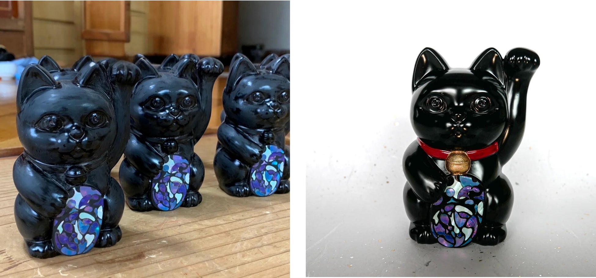 能登半島地震においても日本を代表する漆器の産地である輪島が被災し約1000人いた職人のうち約8割が地域外に流出してしまいました。このManeki Nekoを製造している高岡でも、漆器の職人は数えるほどしかおらず、地域の伝統的ないくつかの技法はすでに再現が困難になっております。