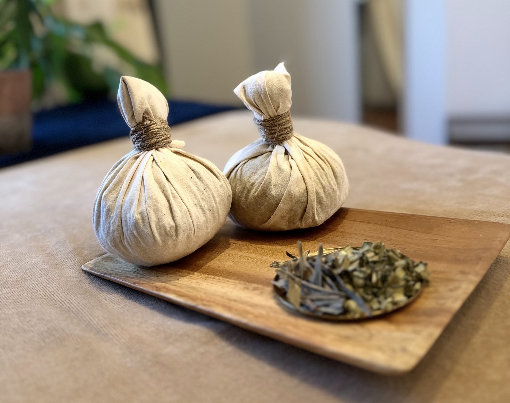 【香り×ハーブ×温】心も体もホッとゆるまるハーブのお灸・触れる、香る、五感で感じる癒しのワークショップ。数種のハーブを手で混ぜて布で包んで紐で結びます。ハーブを手でちぎったり、一つ一つ香りを楽しみながら出来上がったハーブボールで体に当ててポンポンやりあいっこ。子どもも大人も楽しめる体験で、自分や大切な人へのマッサージにも使えます。(※ご自宅で使う時はレンジで温めOK)