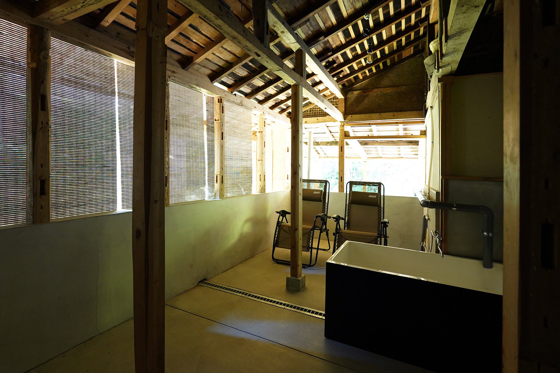 母屋「栄(さかえ)の間」:蔵サウナと外気浴テラス