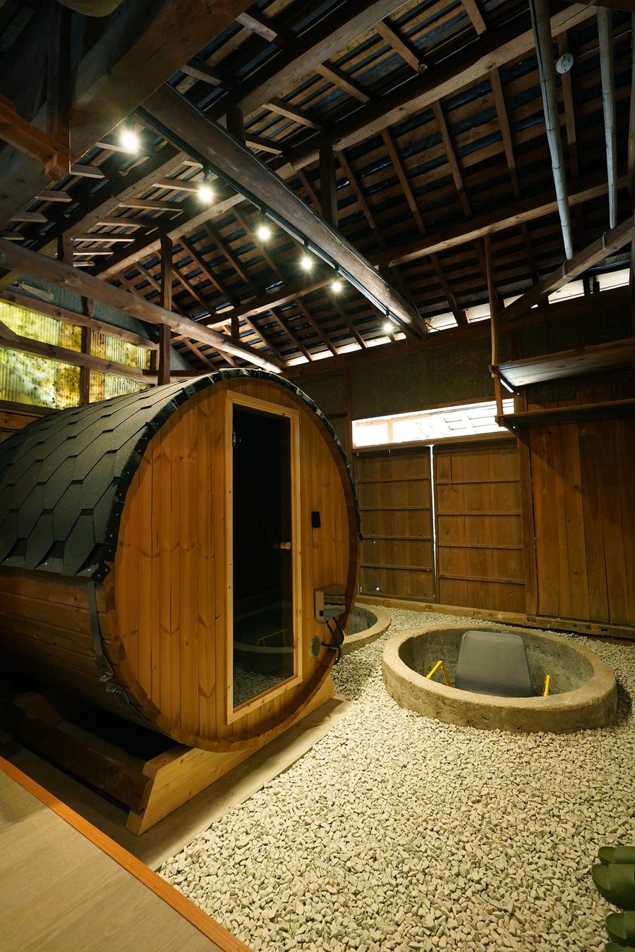 敷地内には趣の異なる三棟の古民家があり、それぞれが一棟貸しの宿泊棟として独立しています。全棟に本格サウナと水風呂を備え、滞在中いつでも“自分のペース”でととのえるのが特徴です。