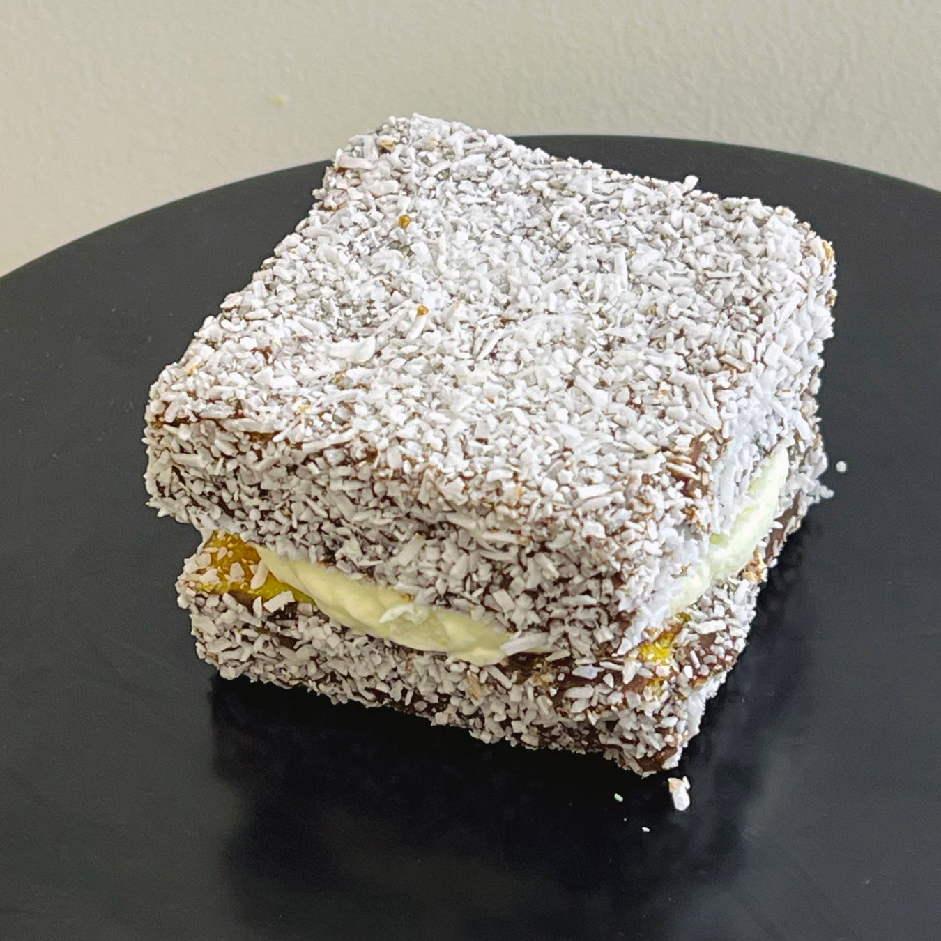 ラミントンとは、オーストラリア・クイーンズランド州発祥の伝統的なデザートです。四角いスポンジ生地をココアアイシングでまとい、ココナッツをたっぷりトッピングし、生クリームをサンドしております。夏にぴったり、冷やしてお召し上がりください!