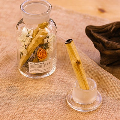 かつてはラテンアメリカの先住民たちが「神の樹」と呼び、魔除けとして使用されてきた香木。その香りの高さと浄化力の強さから、NY周辺のファッション業界やヨガインストラクターなど、サステナブルなライフスタイルに感度の高い人々から注目を集めています。火をつけて焚くことで濃厚な甘い香りが部屋いっぱいに広がり、邪気を払い、幸福を呼び込むスマッジング(=「燻す」の意)として利用できる、自然と環境に配慮したサステナブルな自然由来のアロマです。