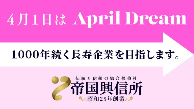 当社は、4月1日を夢を発信する日にしようとするApril Dreamに賛同しています。このプレスリリースは「株式会社 帝国興信所」の夢です。