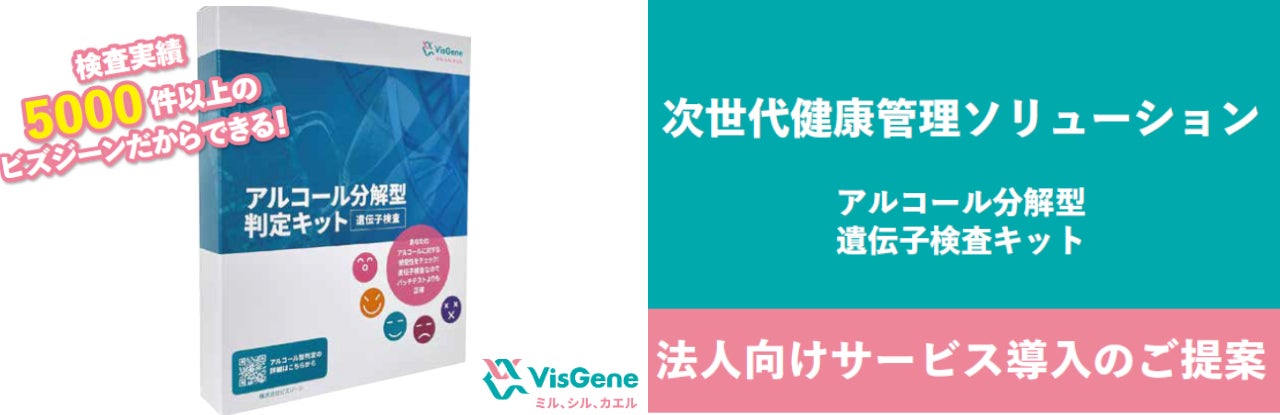 遺伝子の「見える化」技術で人々の健康をサポートする株式会社ビズジーン(所在地:大阪府茨木市、代表取締役:開發 邦宏) は、企業の健康経営を支援する新サービスとして、アルコール感受性遺伝子検査の法人向けパッケージの提供を開始いたしました。本サービスは、社員一人ひとりのアルコール代謝能力を科学的に分析し、個人に適した飲酒指導を可能にすることで、企業の生産性向上と社員の健康増進を支援します。