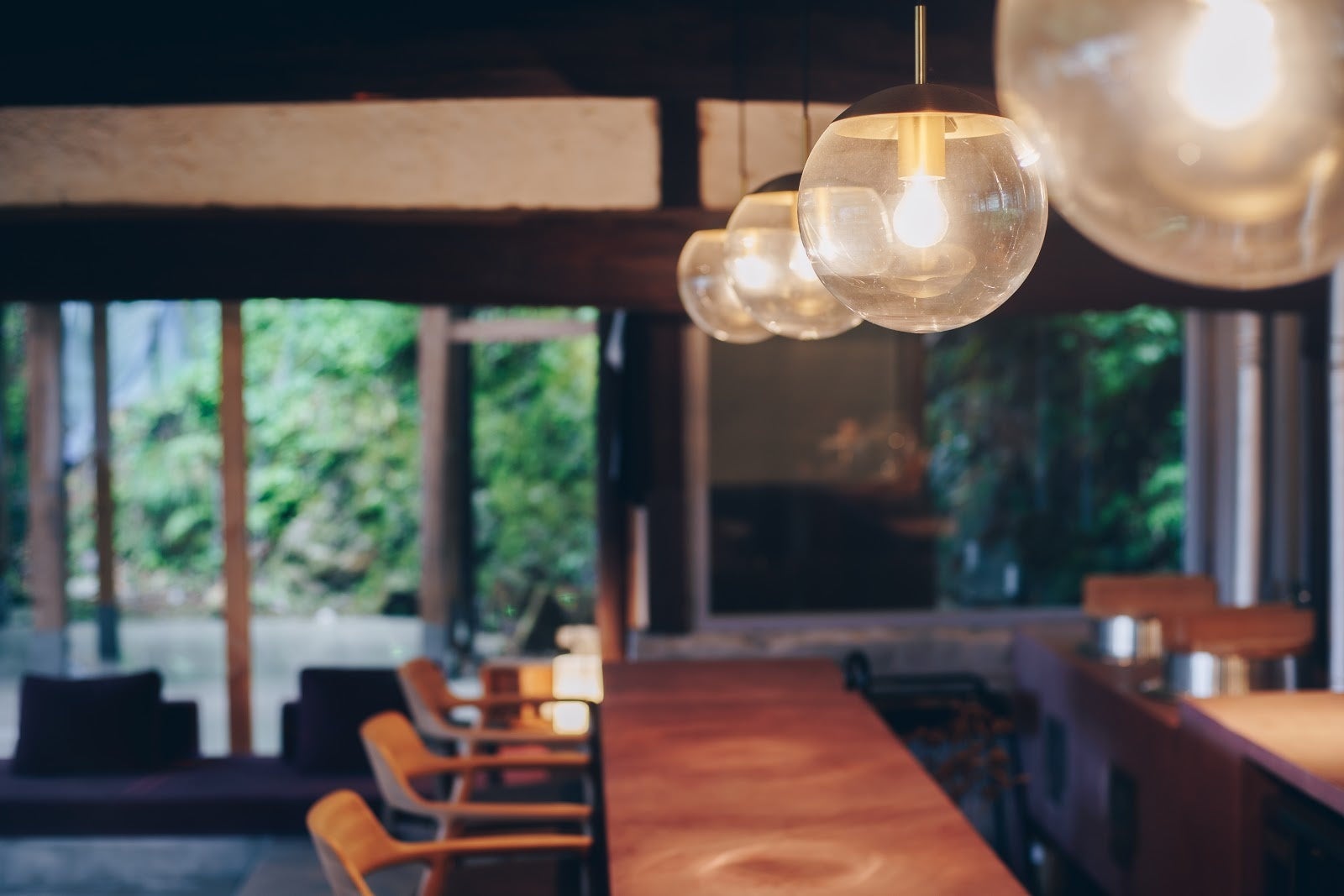 豊かな自然や里山の日常、自身の感覚が拡がりやすいアウトドアサウナ、宿泊者同士の会話も生まれやすい空間設計…。ume,yamazoeを構成するこれらの要素は、訪れる人たちの感覚をほぐし、気持ちをフラットにするための、数ある仕掛けの一つに過ぎません。中でも母屋の中心にある「コの字型のテーブル」は、特に宿泊者の交流が生まれやすい場所です。