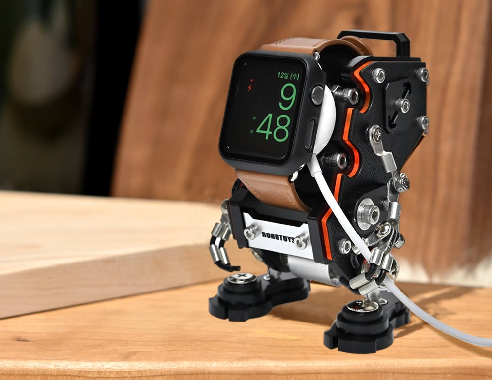 近未来ロボットを彷彿とさせる魅力的なデザインはそのままに、アップルウォッチを装着しながら充電できるようホルダーを改良!