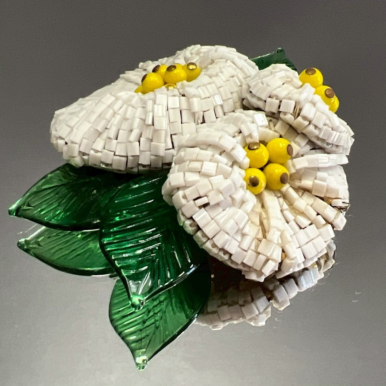その中でもミリアム・ハスケルはデザイナーのフランク・ヘスとともに、ガラスビーズや貝などの自然素材、最新のプラスチックなど多様な材質のパーツを用い、自由で芸術性の高いジュエリーを生み出しました。ビーズワークを核とした精巧なハンドメイドと、ワイヤーワークによる構造は、現在のハンドメイド作品にも大きな影響を与えています。