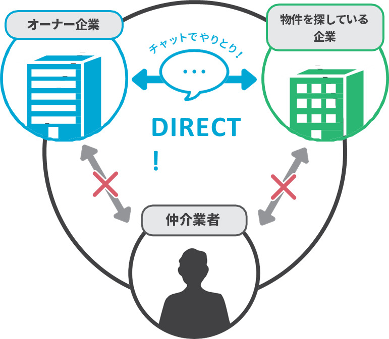 本サービスは、移転を検討する企業とビルオーナーがマッチングできる場を提供するとともに、条件等も直接チャットでやり取りできるため、オフィス探しにかかる双方の手間もコストも削減することができます。