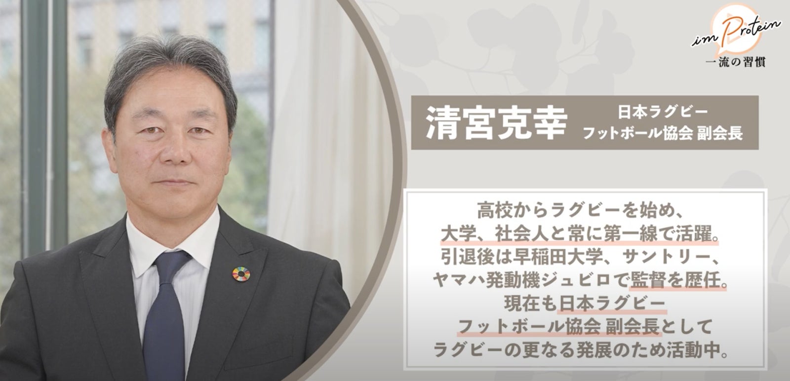 「世の中にない新しい価値を創る」をコンセプトにサプリメントや健康食品の開発・販売事業を展開するオルト株式会社(東京都港区/代表取締役社長:青山海太竜樹)が提供し、各業界の第一線で活躍されるゲストをお招きし考え方や生活習慣についてお話をお伺いするYouTube動画「アイムプロテインチャンネル~一流の習慣~」は、ゲストに日本ラグビーフットボール協会会長の清宮克幸氏をお招きし、自走型組織の作り方についてお話しいただきました。