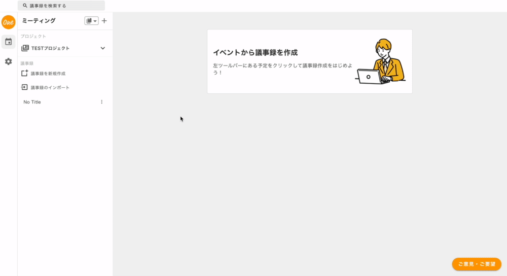プロジェクトを選択すれば過去の議事録一覧を閲覧・編集することが可能です。