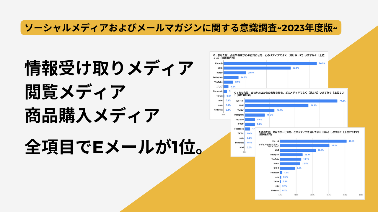 【調査発表】情報受け取りメディア、閲覧メディア、商品購入メディア、全項目でEメールが1位。ソーシャルメディアおよびメールマガジンに関する意識調査(2023年度版)を発表