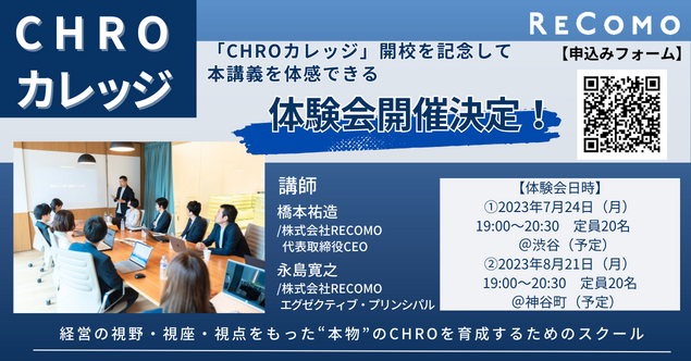 これに先立ちまして、2023年7月と8月に、CHROカレッジ開校を記念して体験会を開催いたします。