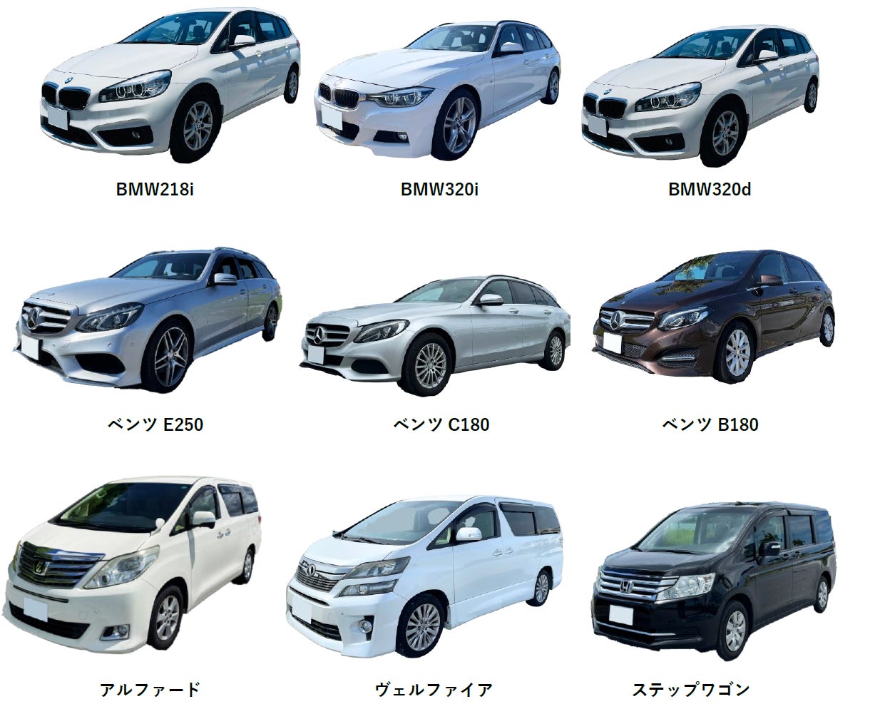ミニバンからベンツ・BMWまでご用意。VIP送迎や接待などにもぜひ。