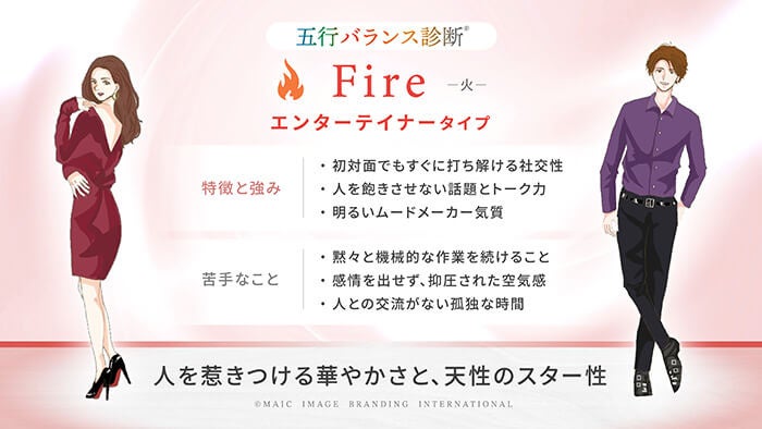 国内外で実績を重ねる中、日本人特有の「自己肯定感の低さ」に課題を見出し、東洋思想をベースにした「五行バランス診断®」を開発。自己理解と他者理解を深める独自メソッドとして、自分らしさを表現するブランディング戦略を提唱する。多くの著名人からも支持され、予約は平均3ヶ月待ち。