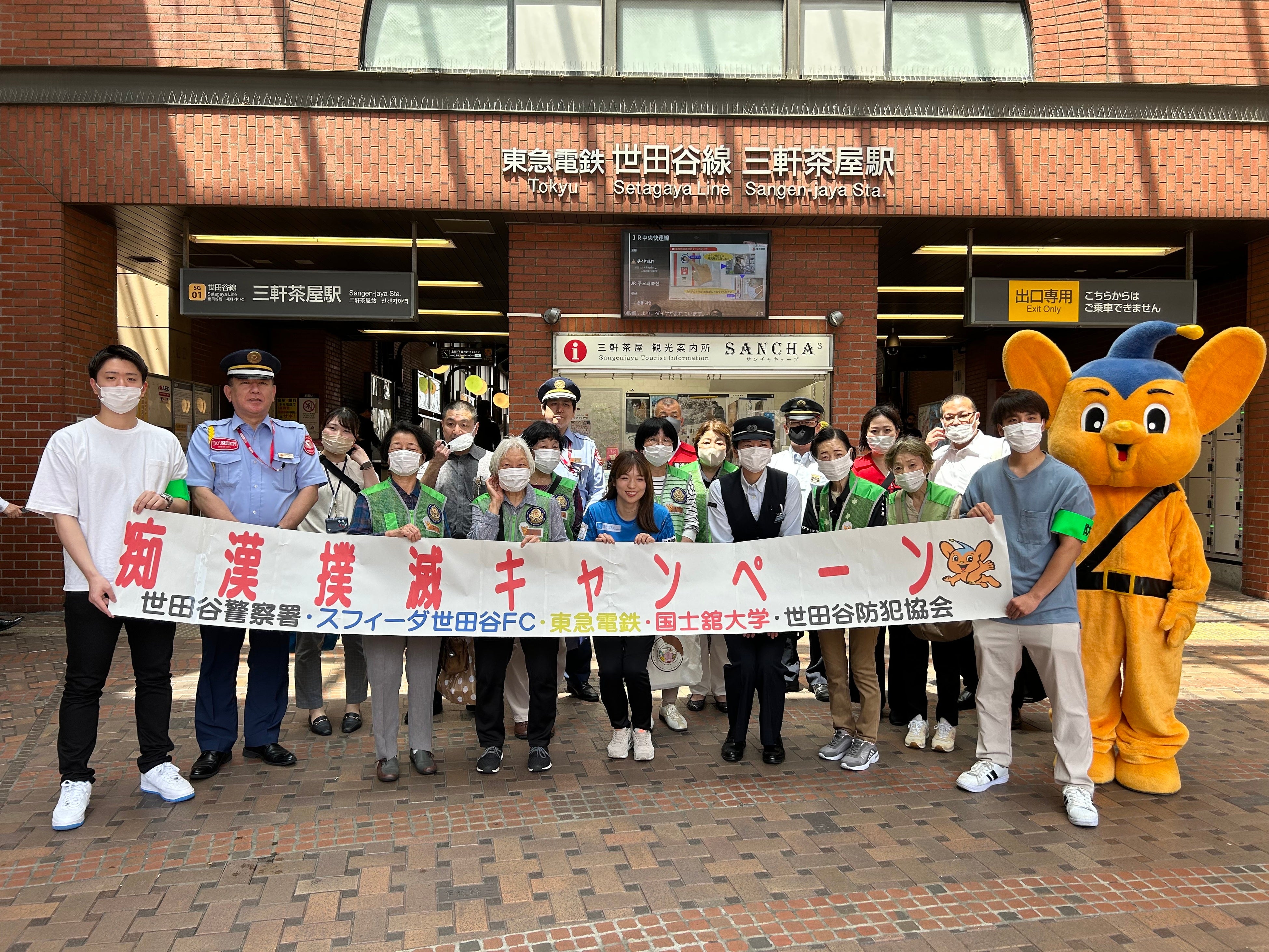 ↑6月の痴漢撲滅キャンペーンの様子(背番号4番:戸田歩選手参加)