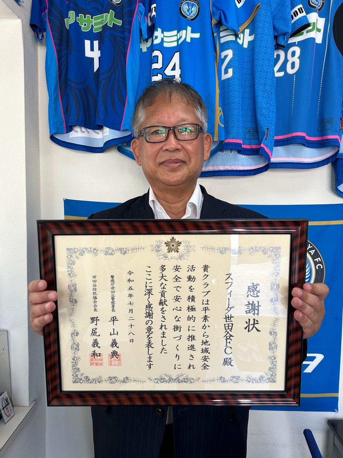 【スフィーダ世田谷FC】世田谷警察署より「防犯功労者」として署長・会長より感謝状を授与