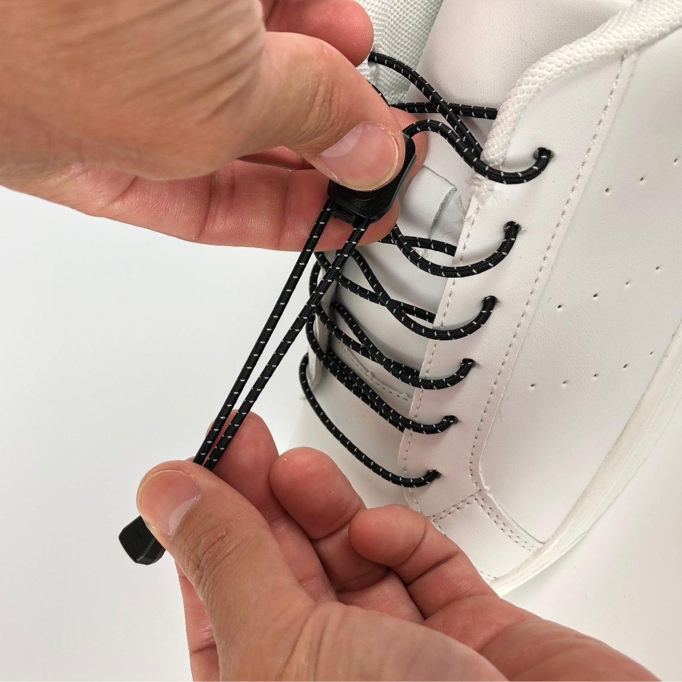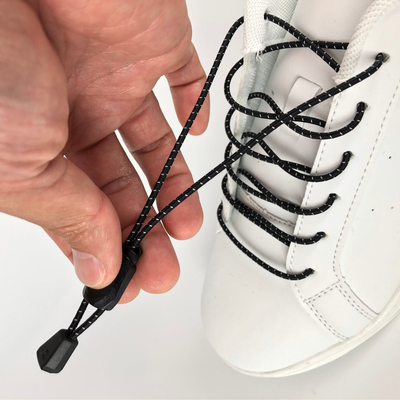 ① 靴紐を付け替えるだけで超カンタンな脱ぎ履きを実現!