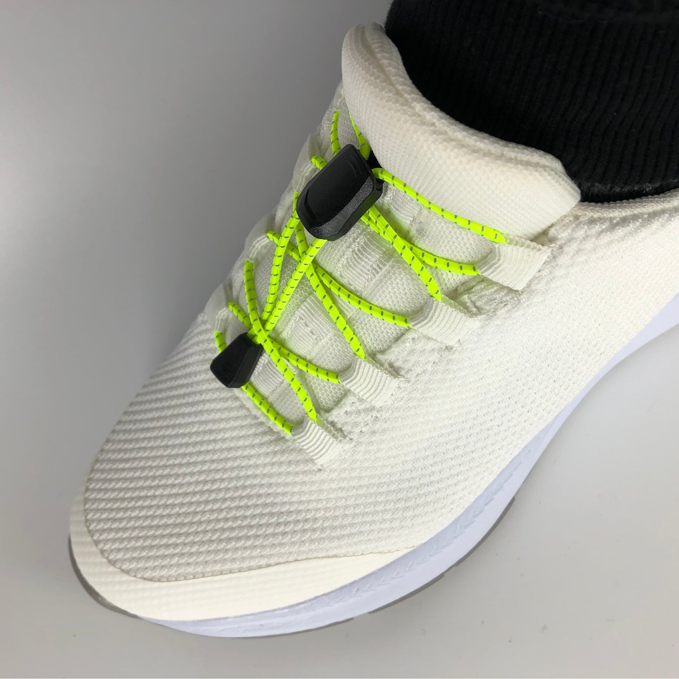 これまで使用していたパーツをアップデートしより操作性を向上させ、靴紐はリフレクター入りのゴム紐を使用することで、カンタンな脱ぎ履きだけでなく、街灯や車のライトにも反射し、夜のエクササイズにも安心してお使い頂けるようになりました。