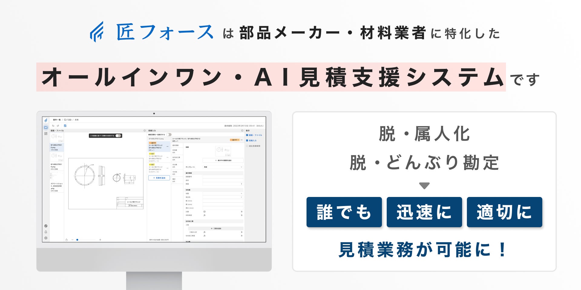製造業界に特化したAI見積支援システム『匠フォース』を提供しております。