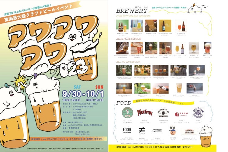9月30日(土)と10月1日(日)の2日間、東海最大級クラフトビールイベント『アワアワアワー』が豊橋市まちなか広場にて開催されます。