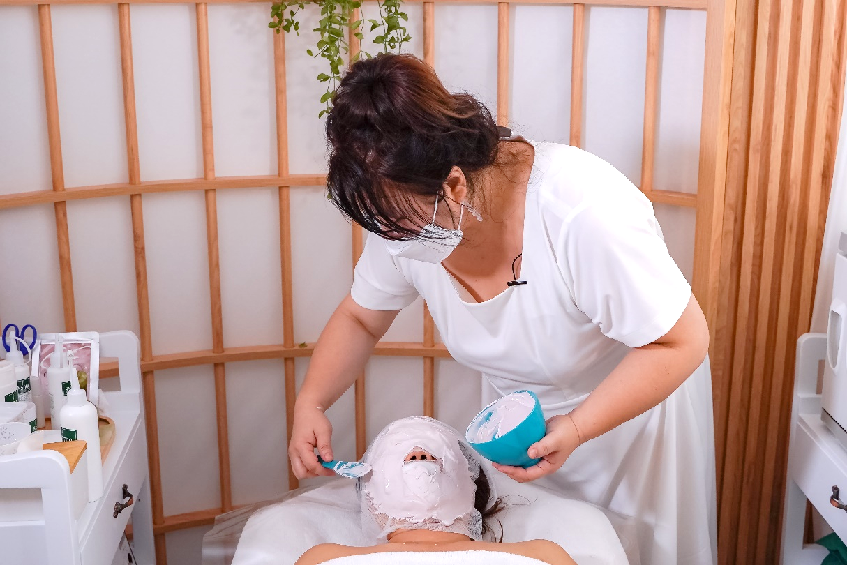 エステの施術師が常駐し、お客様に「ホームケア+ エステサロン +サプリメント食品」の3つの観点からアドバイスし、物販への購入へ繋げていきます。