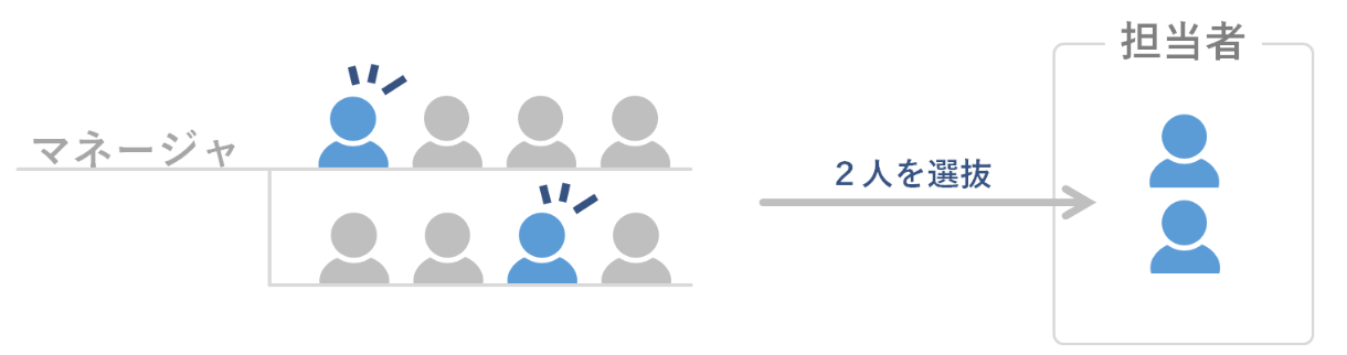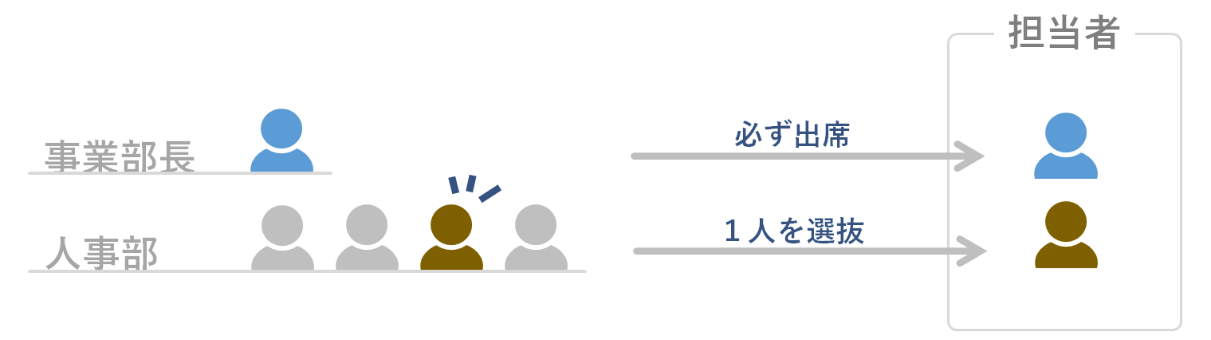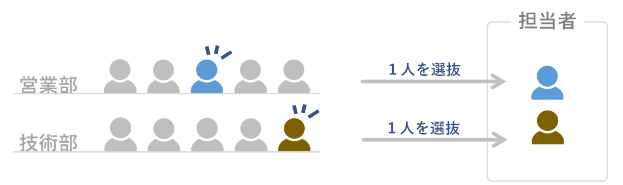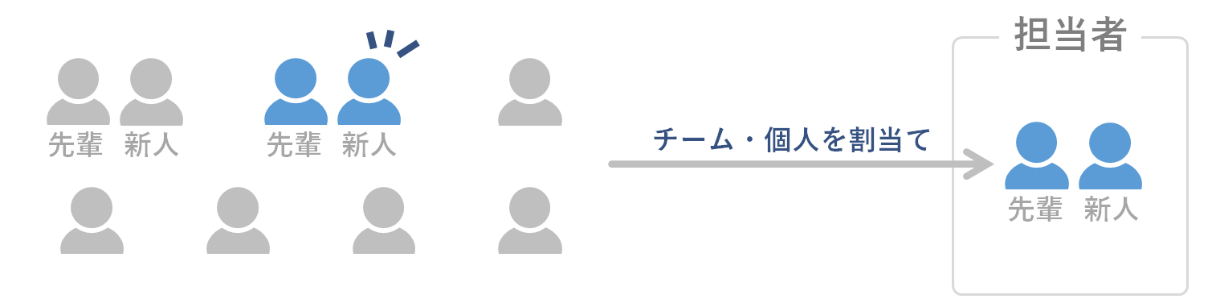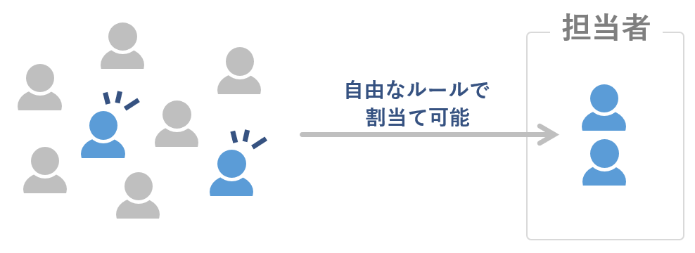 「新規商談」や「採用面接」では、複数メンバーの中から1~2名を選抜し、選抜された担当者が商談・面接を担当する、といういわゆる「担当者の割り当て」が一般的に行われています。