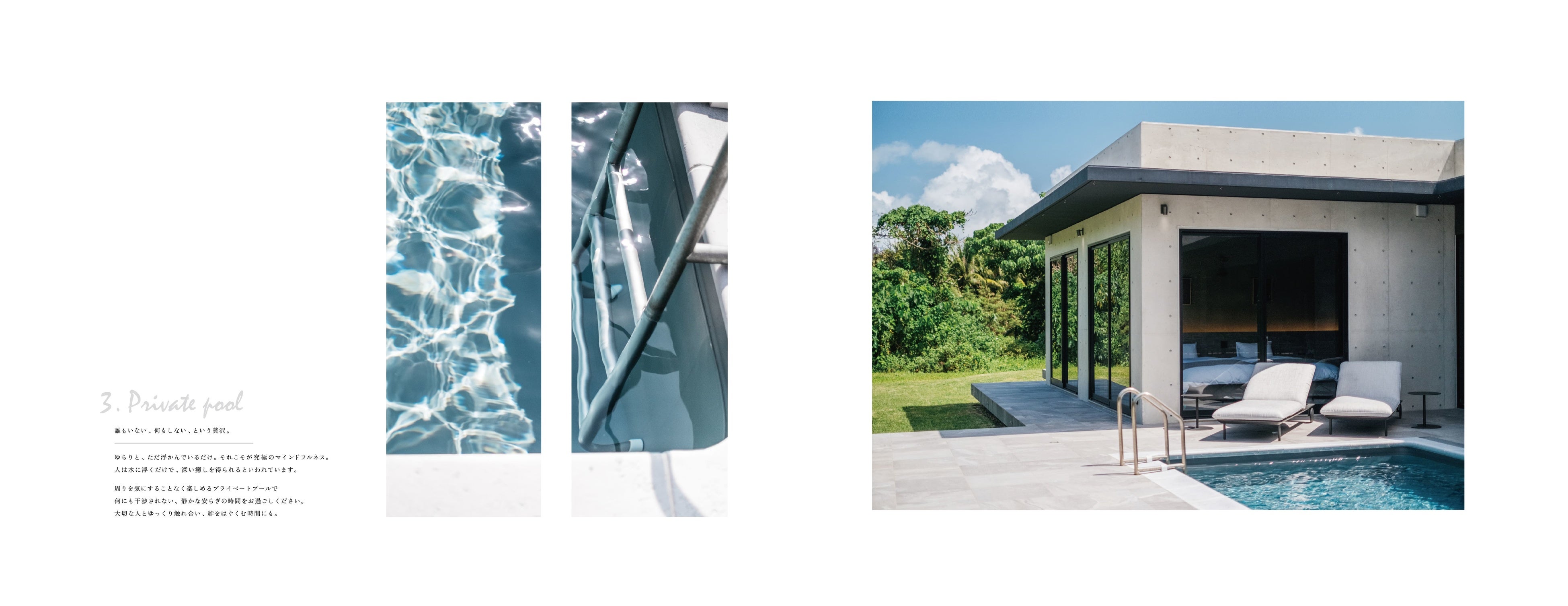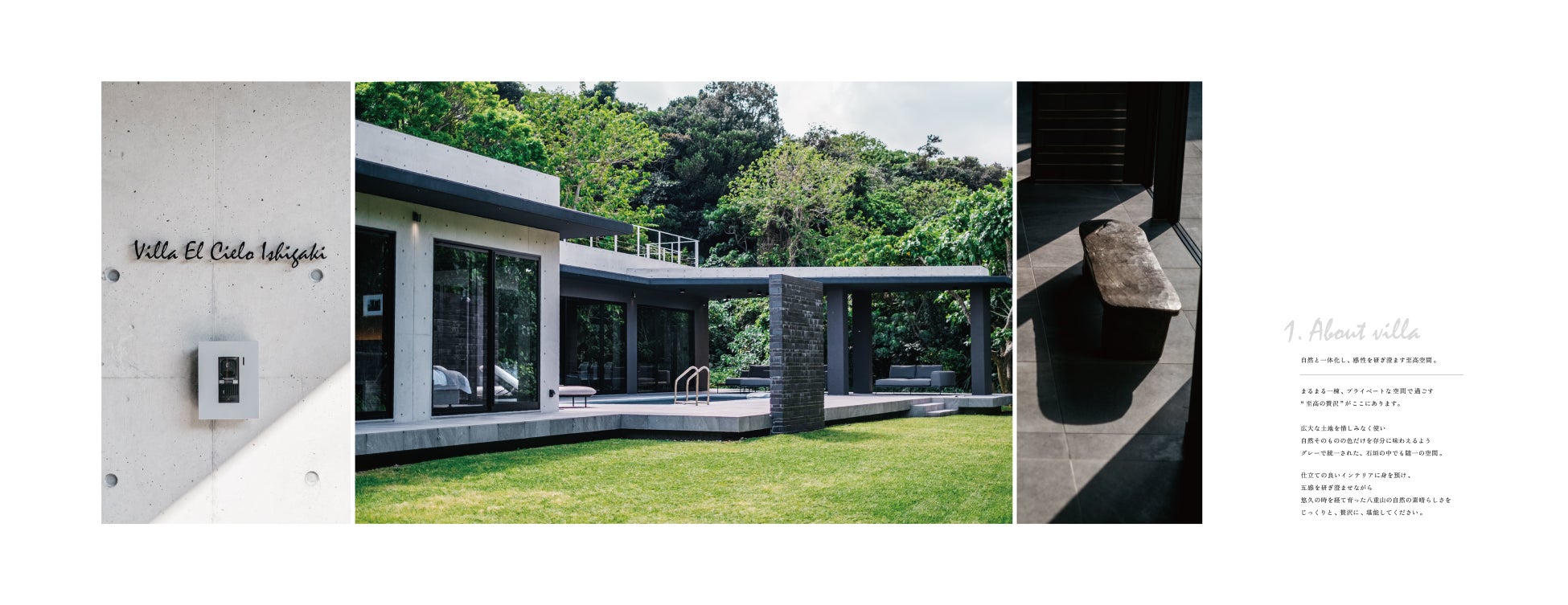 Villa El Cielo Ishigakiのブランドブックデザイン・編集は、大手商業施設のキャンペーンビジュアルなども制作しているアートディレクターkyonが手掛け、ウェブ制作は多数企業や大型キャンペーンのウェブサイト制作実績を持つ、IKIMONO Inc.の古屋悠が担当。ムービー、スチール、モデルキャスティングは株式会社 VR STUDIOが担当し、非日常を楽しめるラグジュアリーな宿泊体験や、石垣の広大な自然の魅力が伝わるイメージビジュアルを造り上げました。