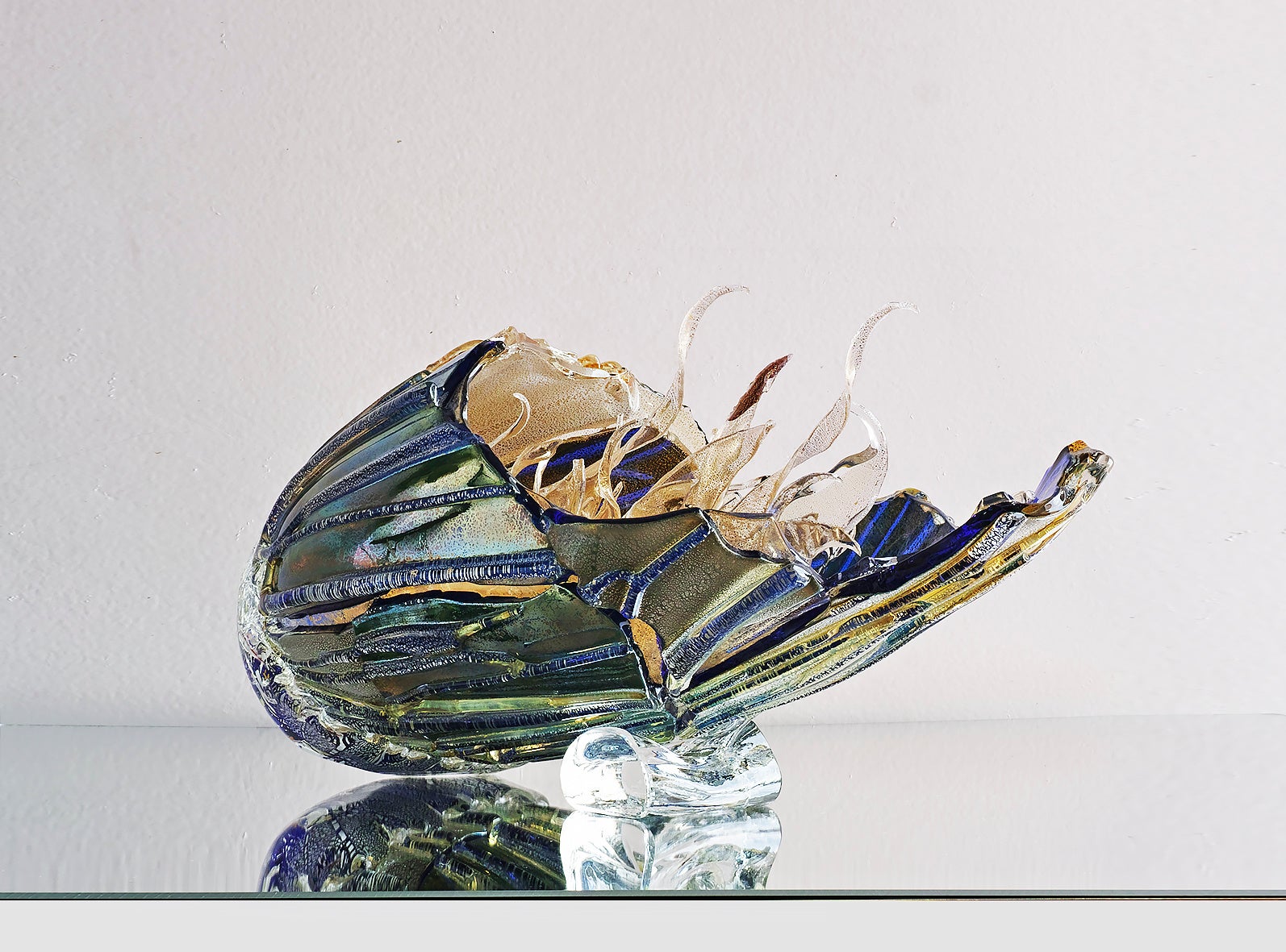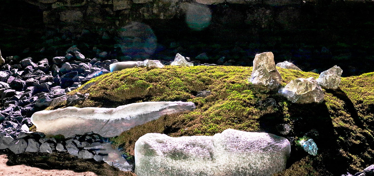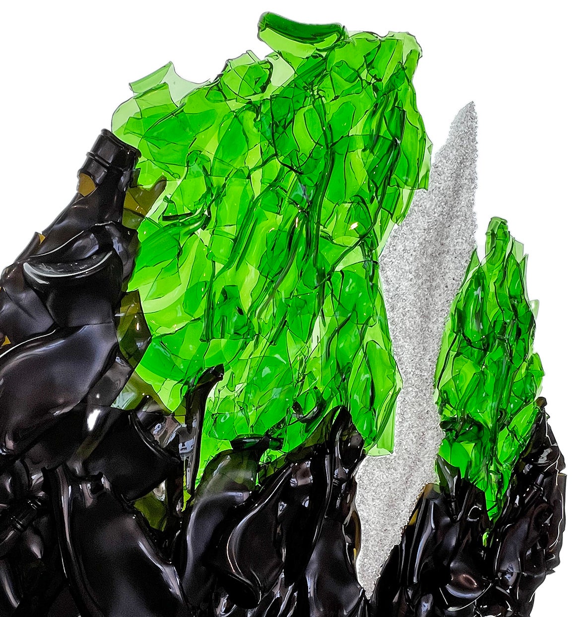 西中は、役割を終えたガラス製品にその記憶を留めたカタチで新しい命を吹き込み、 「再生と永遠の循環」を表現する作品を創作している。