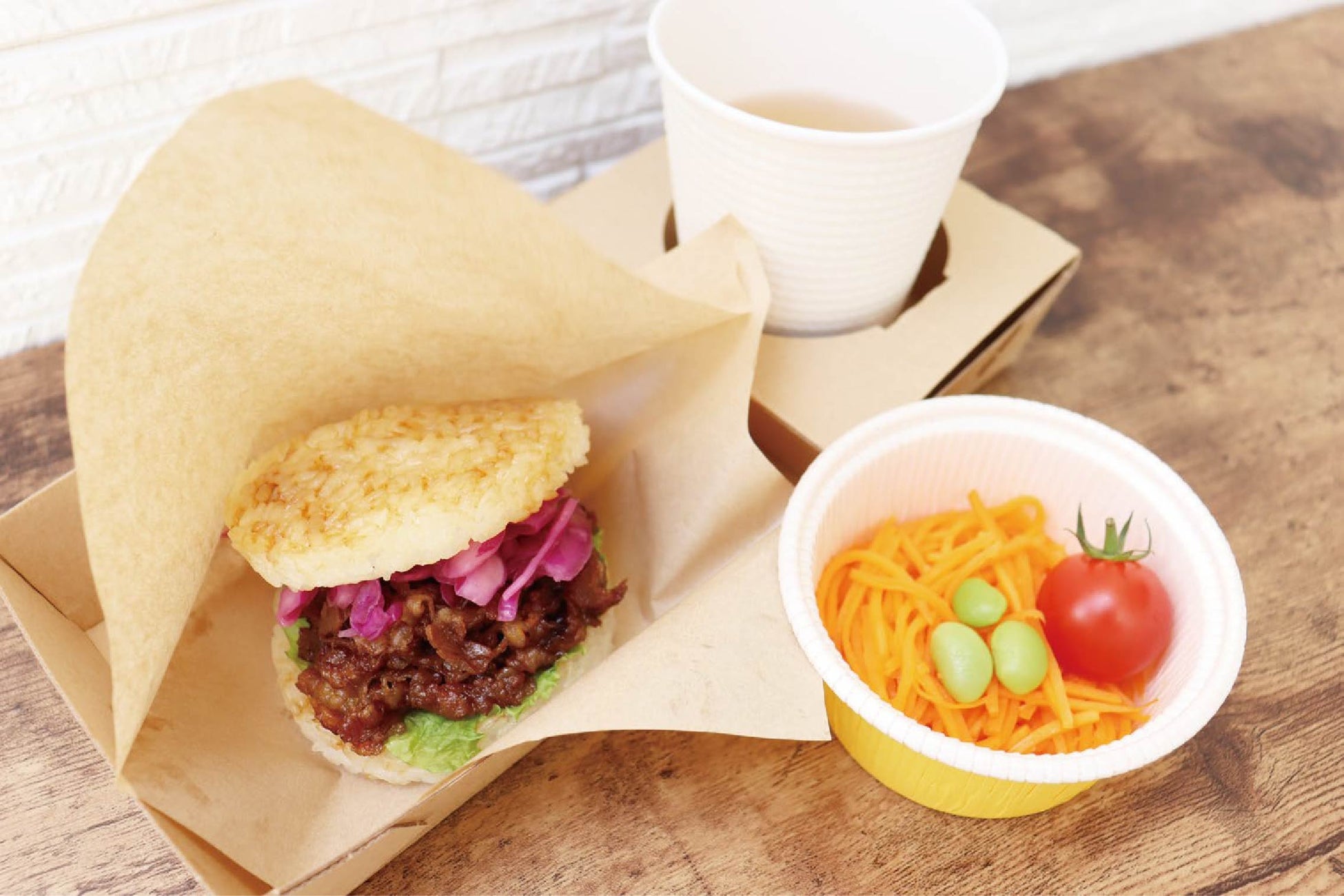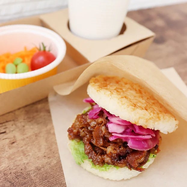 ココトモファームで育てた地元犬山のお米を使ったライスバーガー。パテの製造からお客様への販売まで行います。食べていただいた方に喜んでいただくお仕事です。
