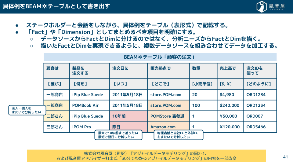 ”何をディメンションまたはファクトとするのか、考え方が少しずつ分かってきました。”